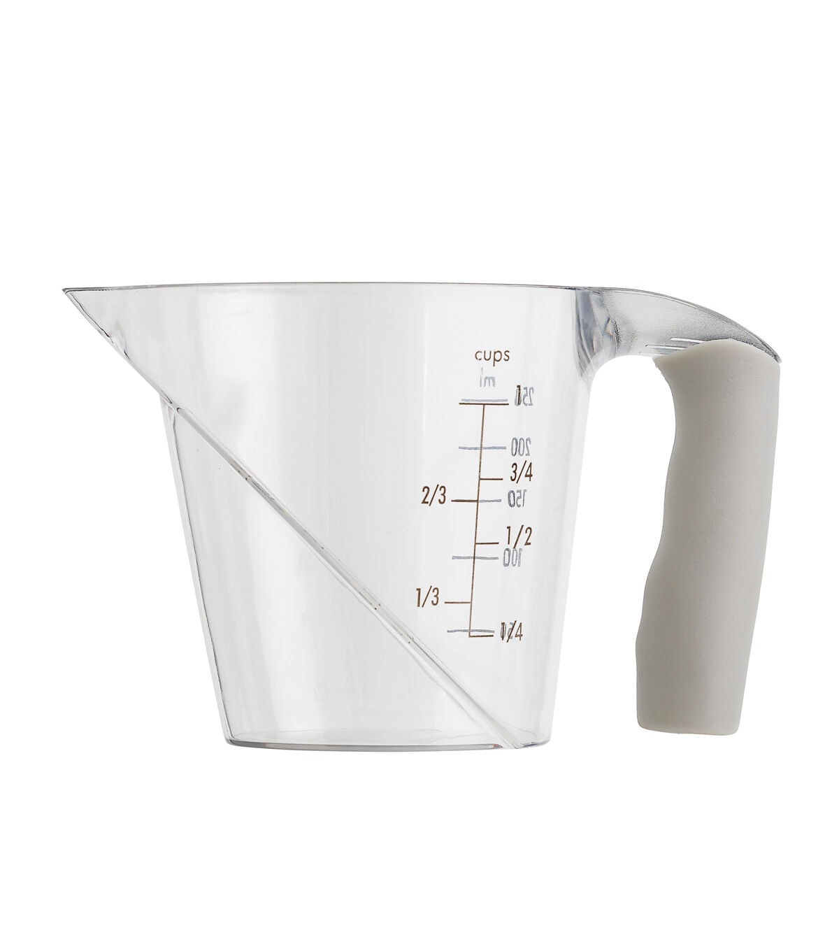 It has never been easier to get an accurate measurement while cooking. This angled measuring cup allows you to read measurements from above as you fill the cup. No more guesswork, no more stooping to check your progress! The measurement markings come in both cups and milliliters for your convenience.