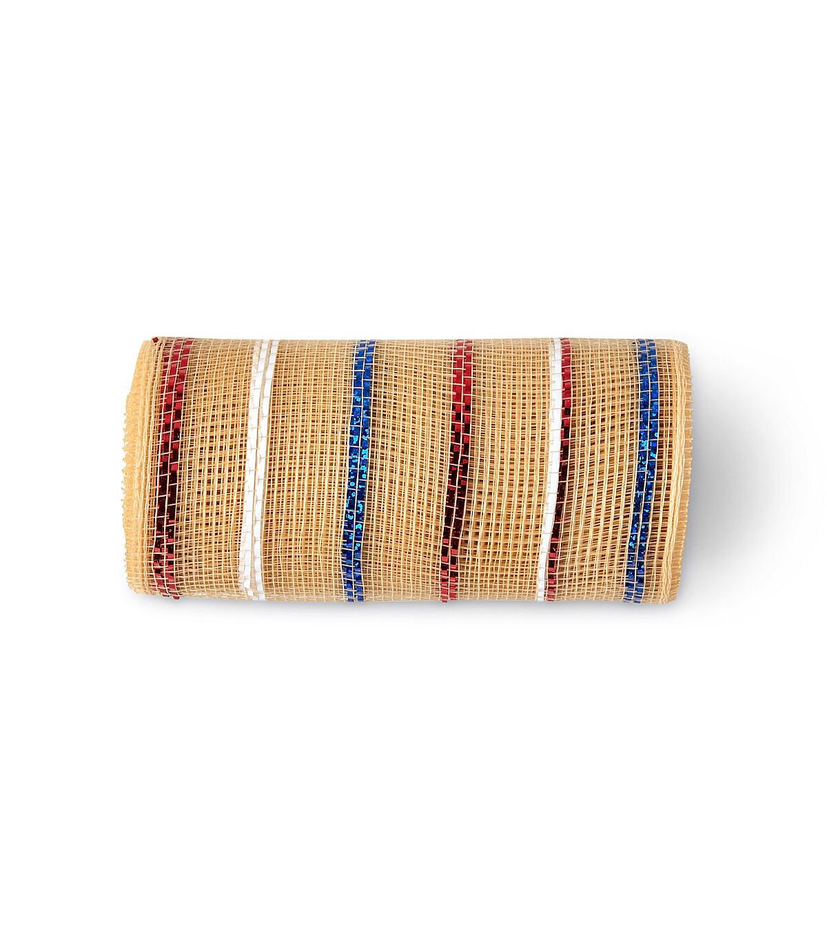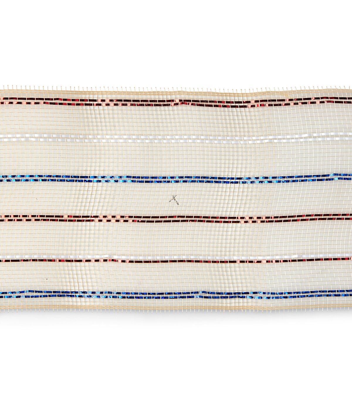 Make Your Patriotic Decorations Stand Out with Happy Patriotic 5.5" x 18' Natural Red Striped Metallic Decorative Mesh