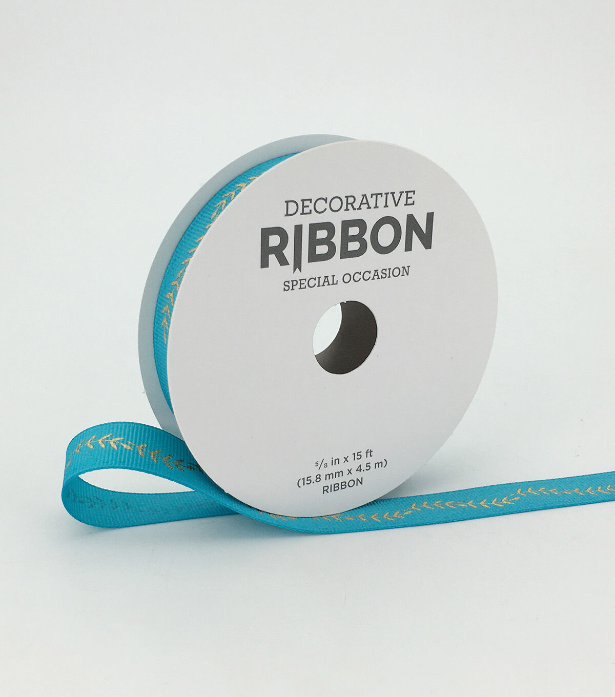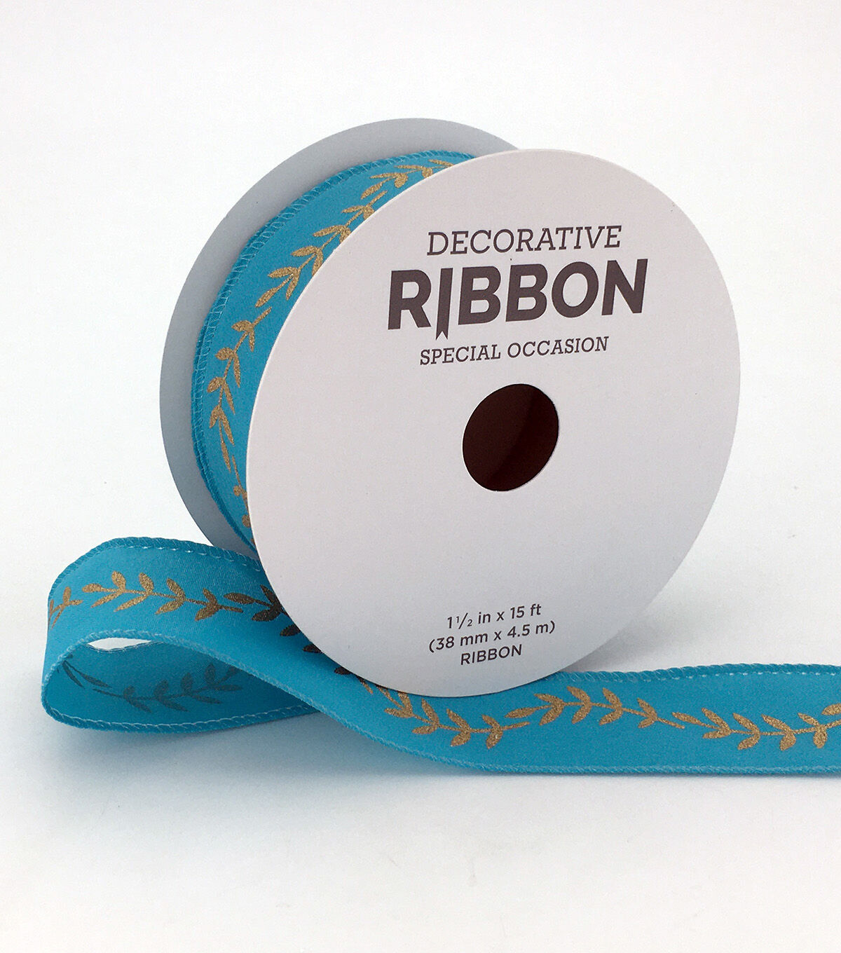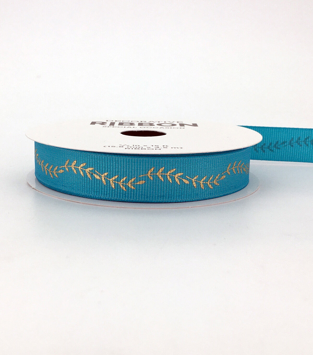 Adorn wreaths, garlands or bouquets with the Place & Time Gold Fern Teal Grosgrain Ribbon. It flaunts a gorgeous teal shade and a leaf pattern in a gold tone. You can also use this grosgrain ribbon to trim tablecloths, mug rugs or curtains. Team it with other ribbons in matching hues for enhanced appeal.