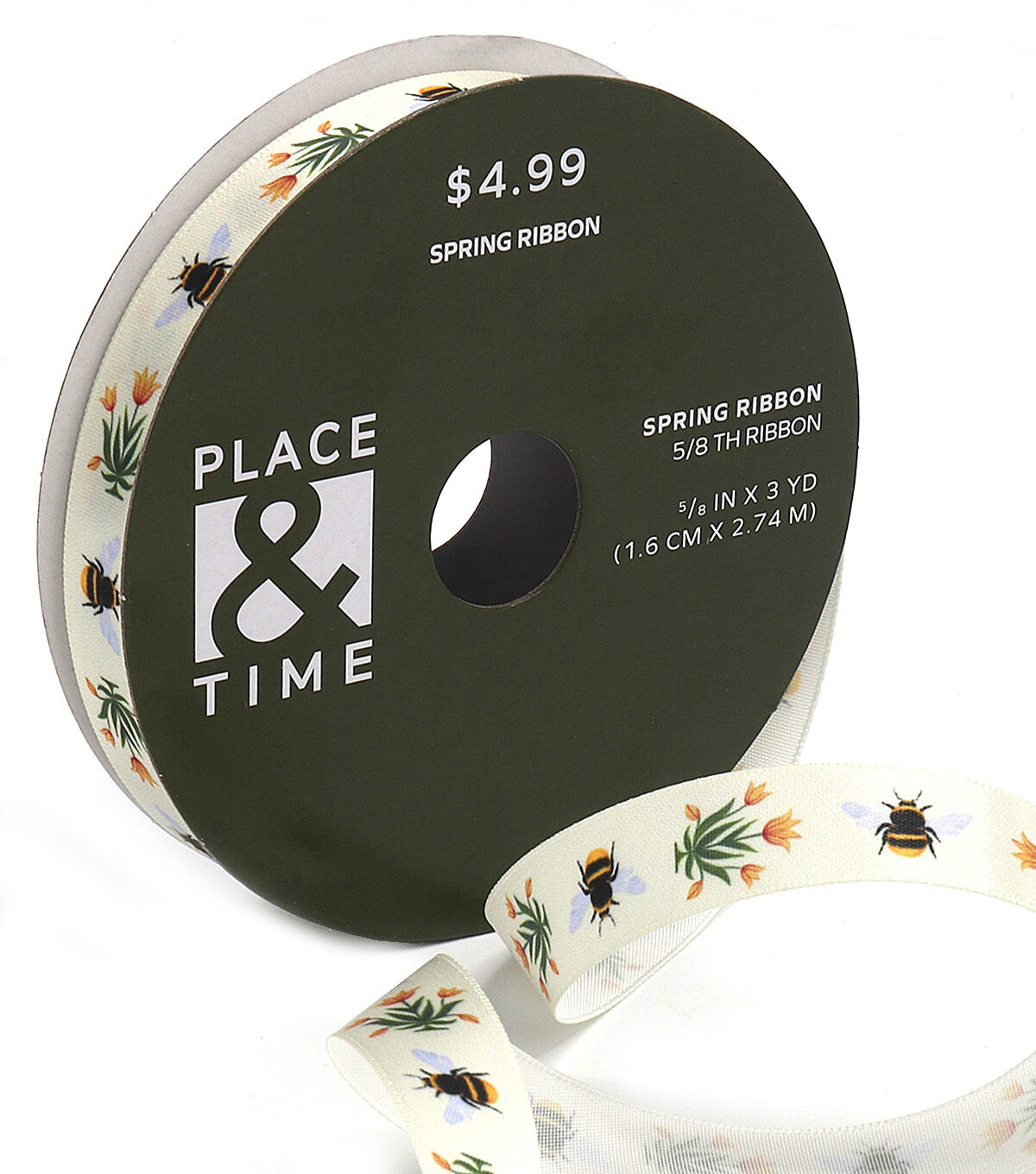 Enhance your spring home decor with lovely accessories such as the Spring Bees & Flowers Ribbon by Place & Time. Sporting a print of flowers and bees, this decorative ribbon will be perfect for adding a wonderful finishing touch to DIY projects. Make bows with it and use them to accentuate gift baskets, favor bags, flower vases and more for added visual charm.