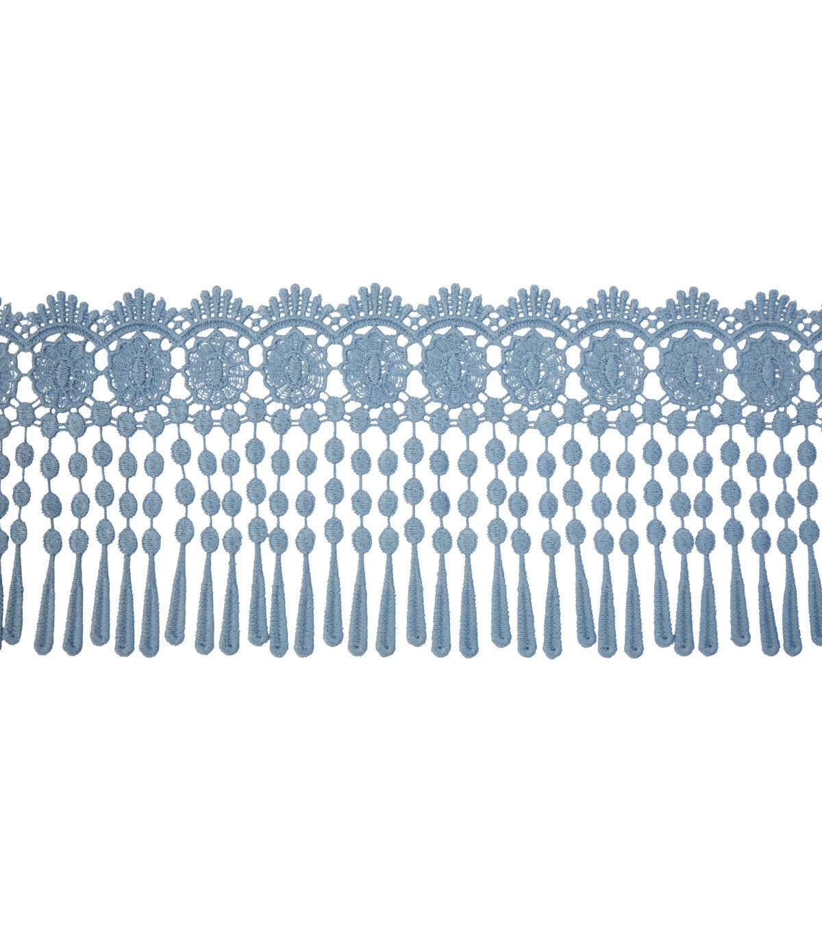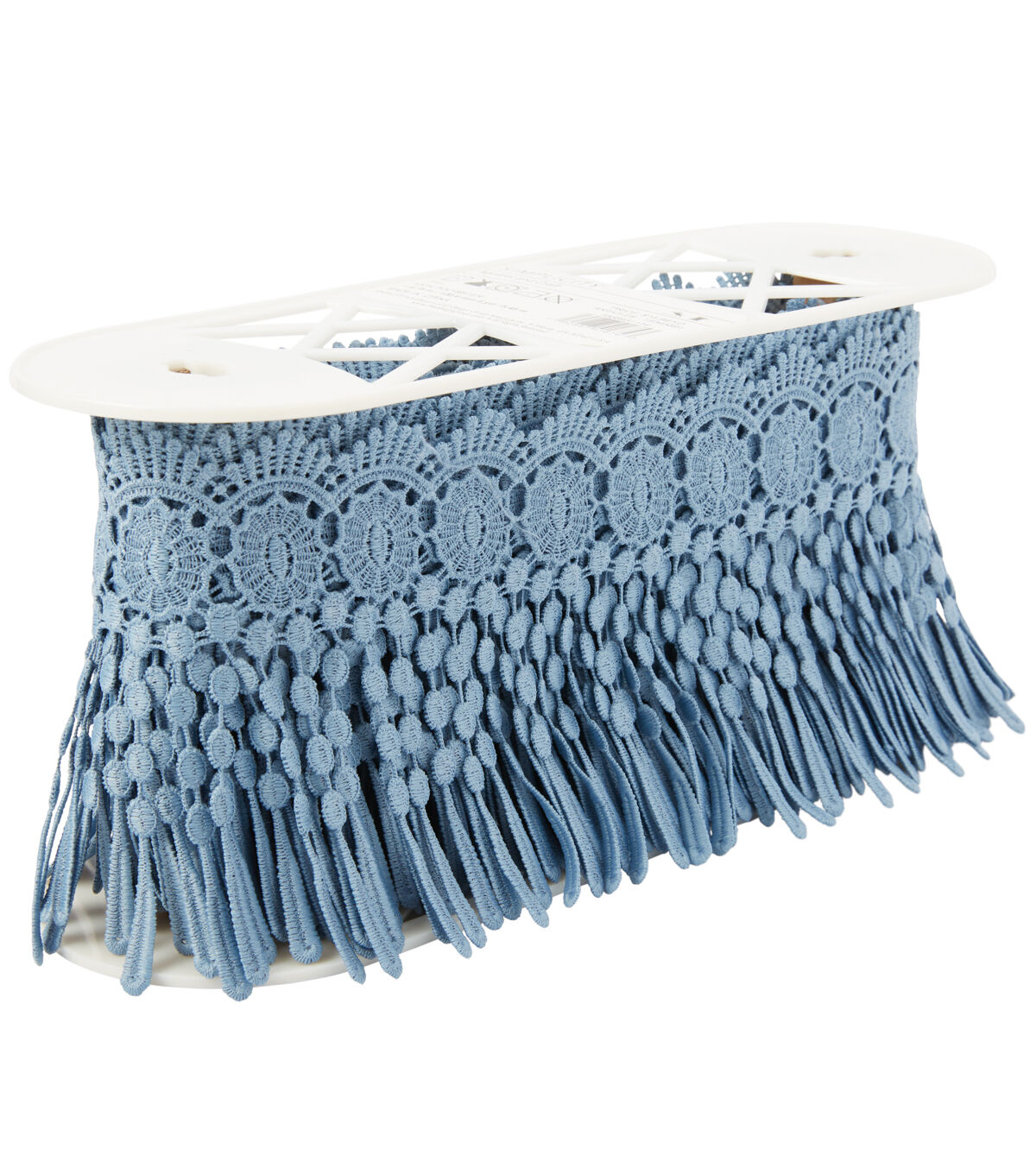 Add Visual Flair To A Handmade Fabric Tote Or Lamshade Using The Simplicity Dangle Lace Trim - Williamsburg Blue. Add To Your Favorite Clothing Project.