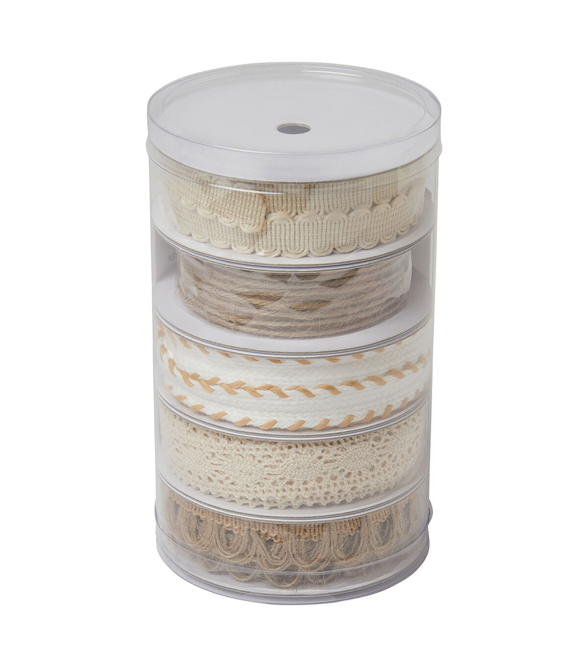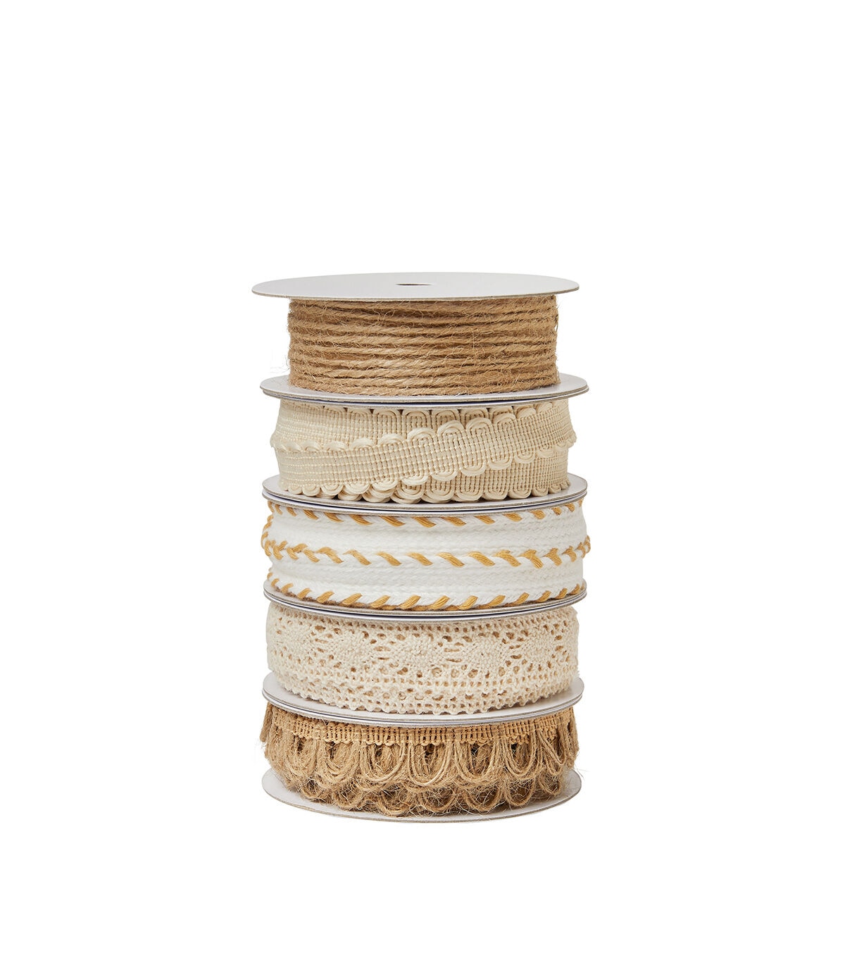 • POLYESTER, JUTE AND COTTONJUTE AND CREAM COLORED ASSORTED TRIMS