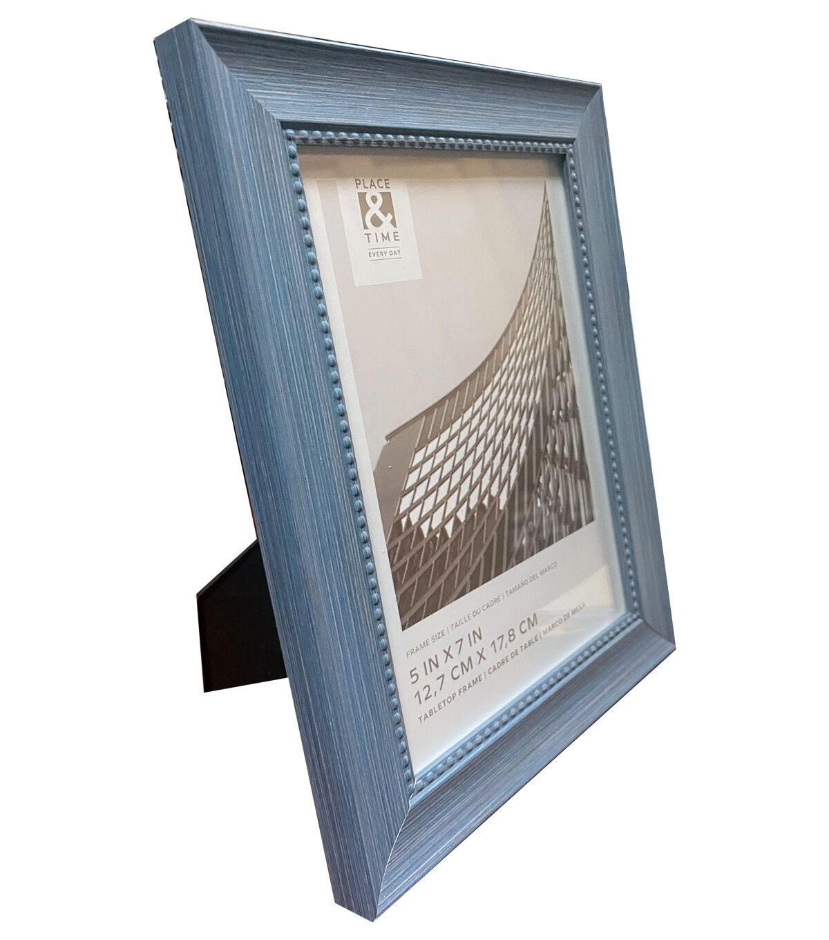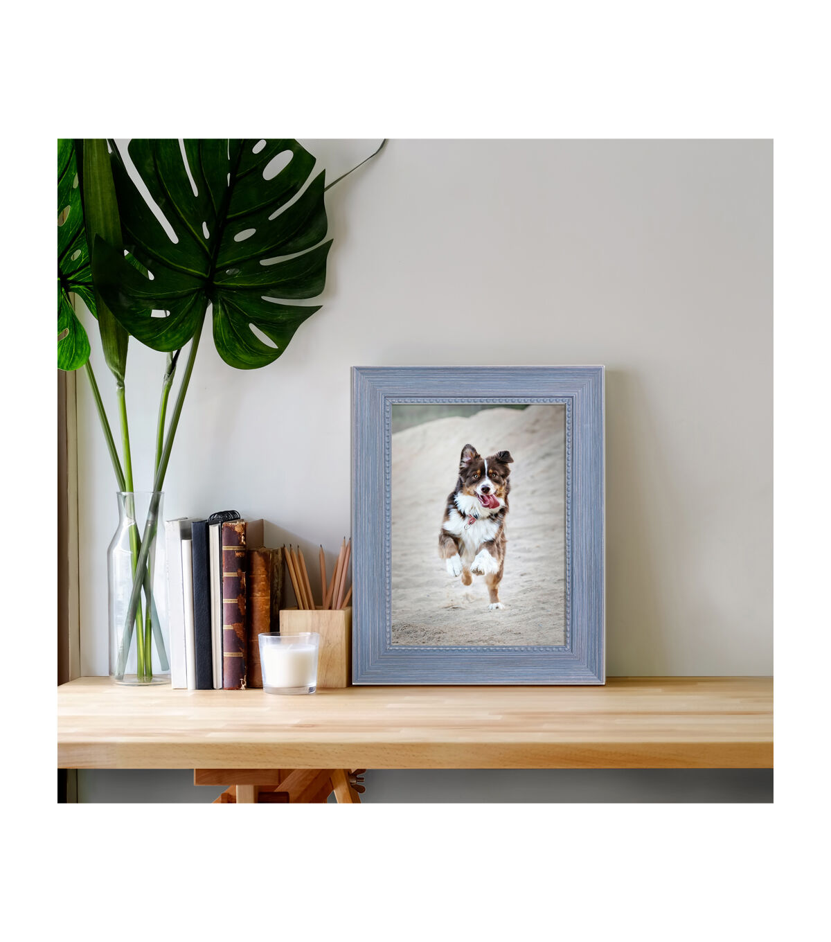 Delicate beading and a petite blue scooped frame come together to create a charming display in our Layla tabletop frame. The glass face ensures that your treasured photos and art are protected. Delivers ready to hang or display on your mantle or table with the included easel.