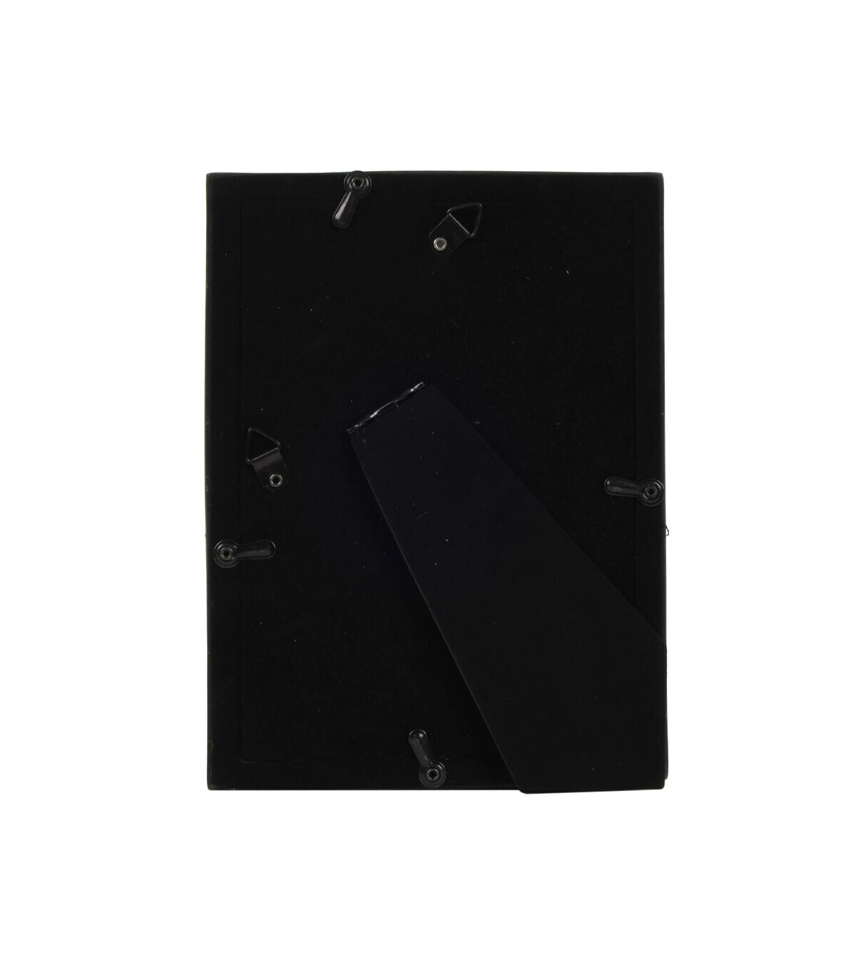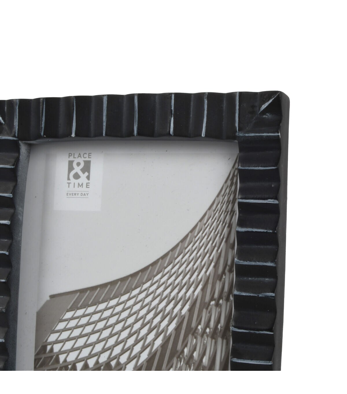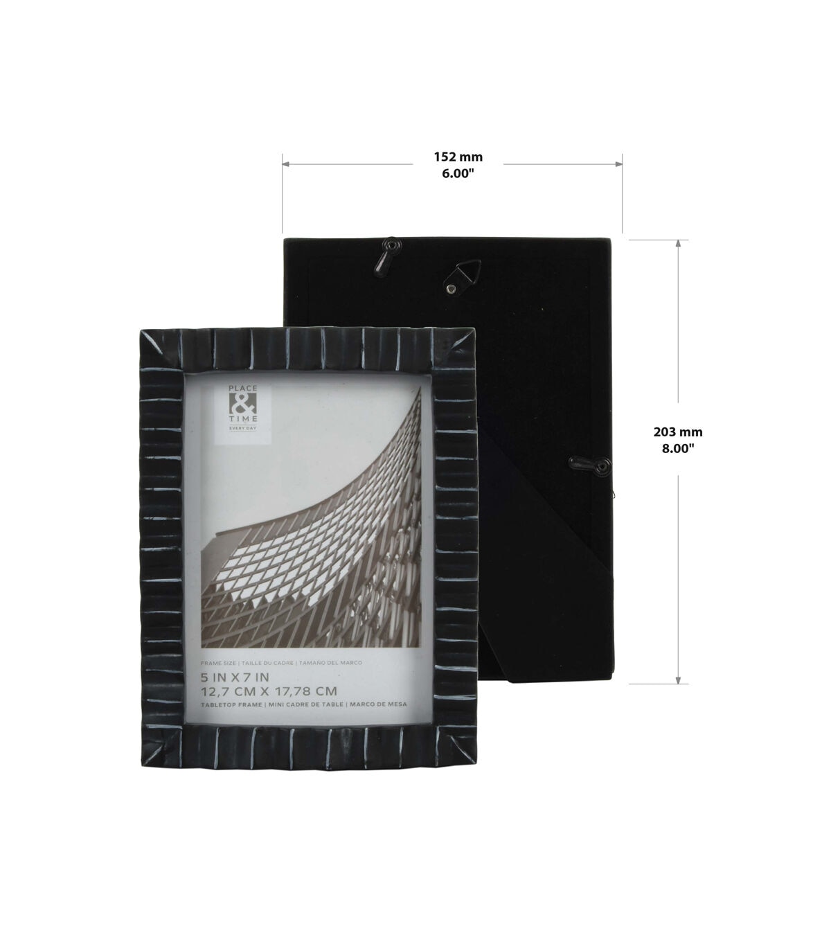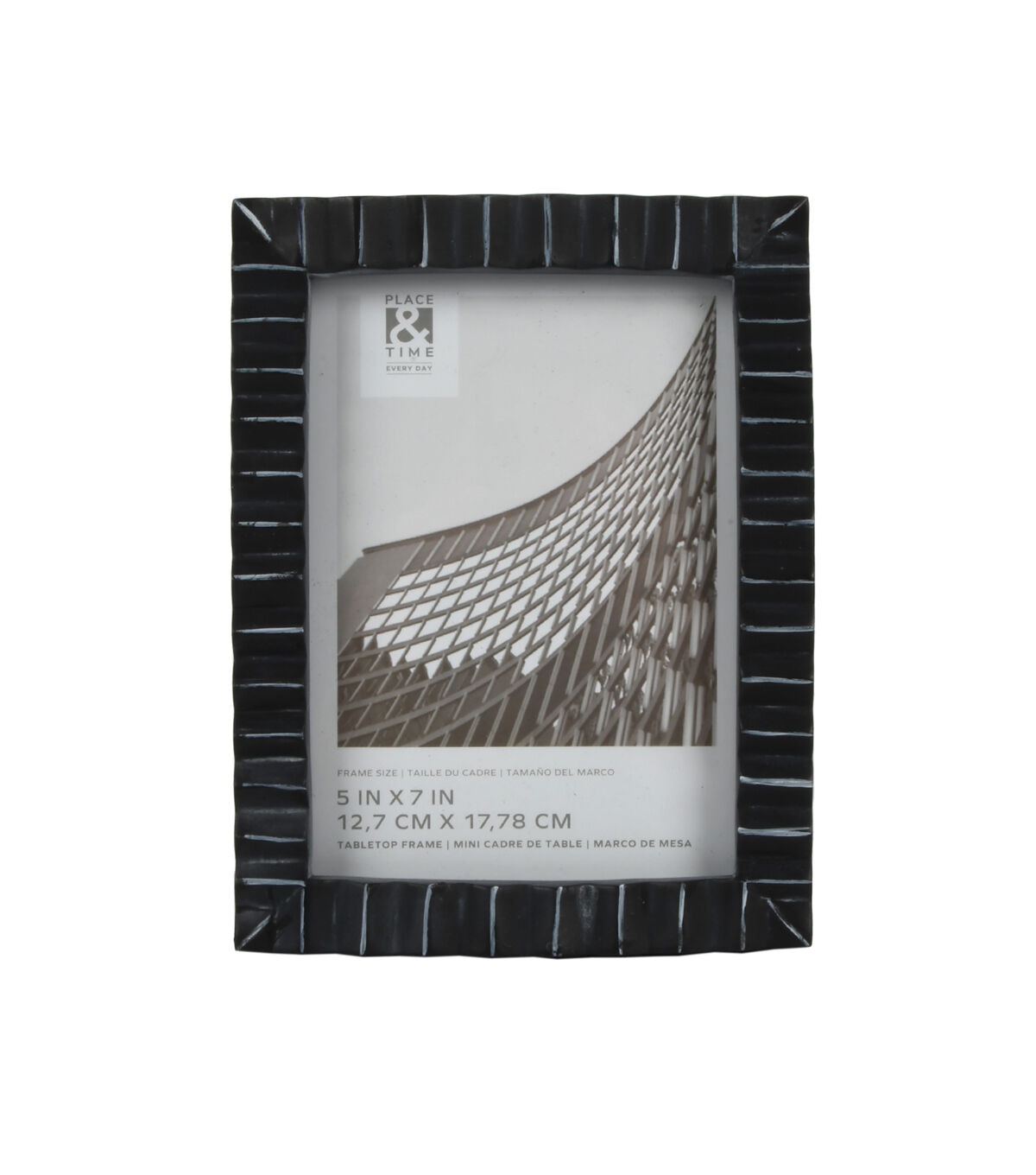 Crafted with a matte finish that resembles glazed ceramic, this stylish sculpted picture frame is the perfect addition to any modern, eclectic, or transitional home decor. The chic black frame is fashioned from high-quality resin and accented with white to accentuate the design details. This lovely frame is ready to highlight your most cherished five-inch by seven-inch photo on the wall or a tabletop. It features a backloaded design with clear glass secured by easy-open tabs that make inserting your photographs or prints easy.
