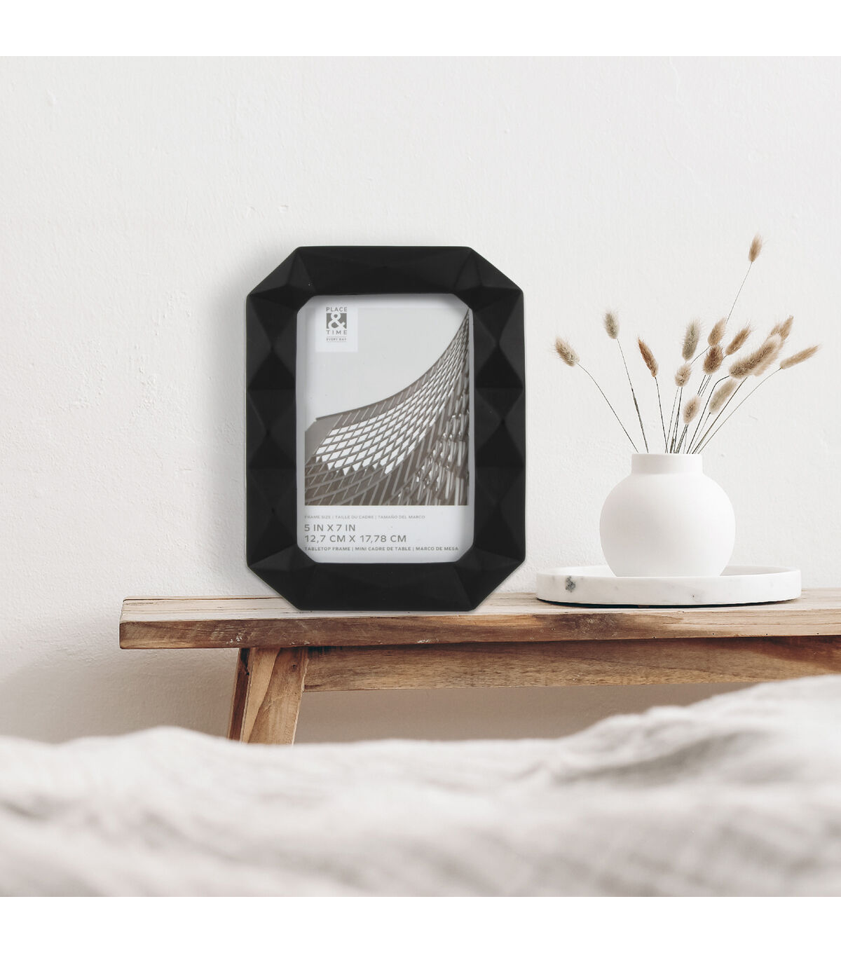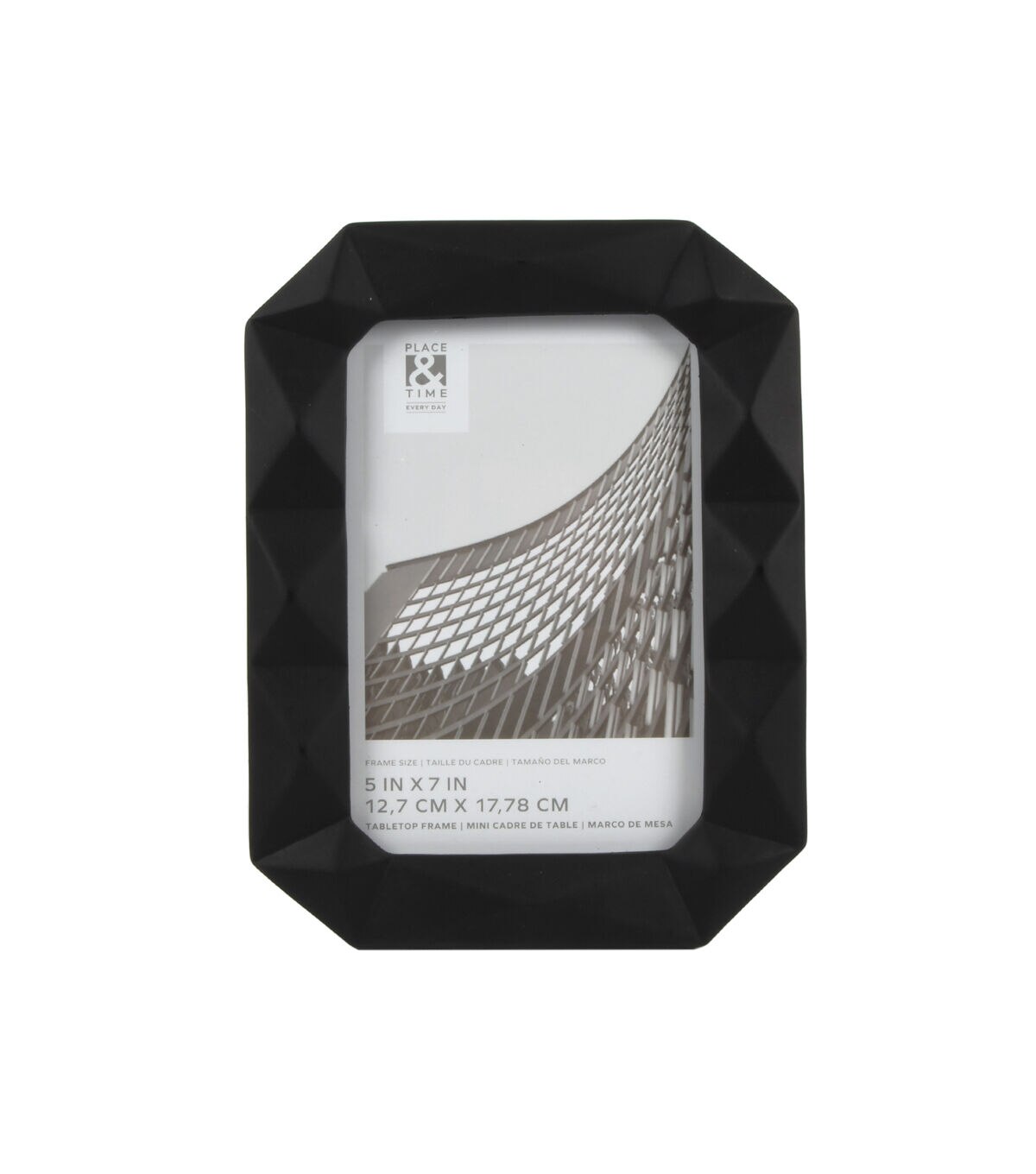 Display Your Memories in Style with the 5" x 7" Glossy Black Geometric Tabletop Picture Frame by Place & Time