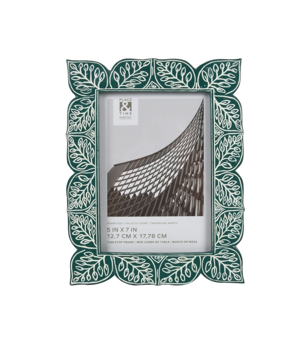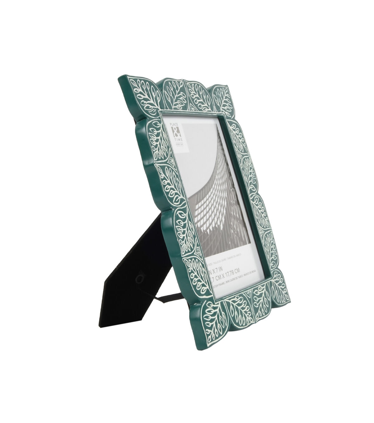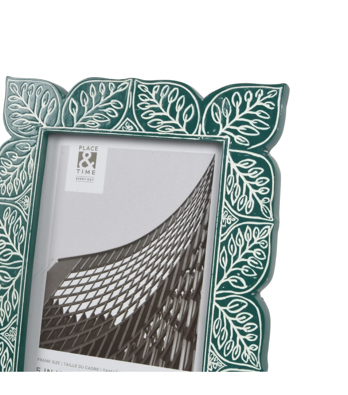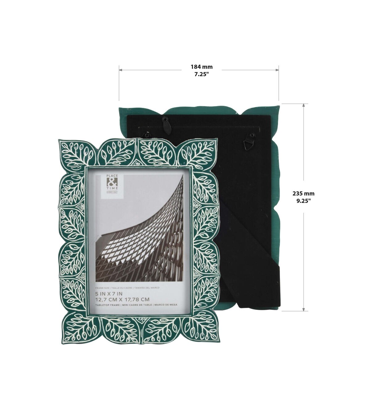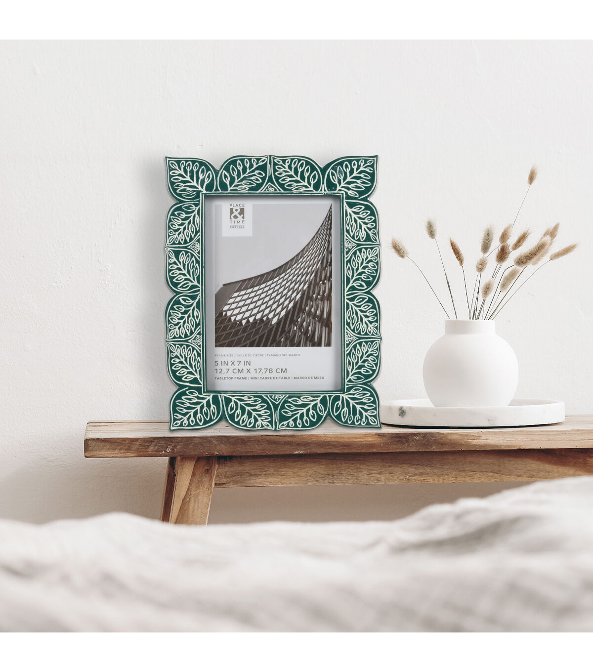 Display Your Cherished Memories with the 5" x 7" Green Sculpted Resin Leaf Tabletop Picture Frame by Place & Time