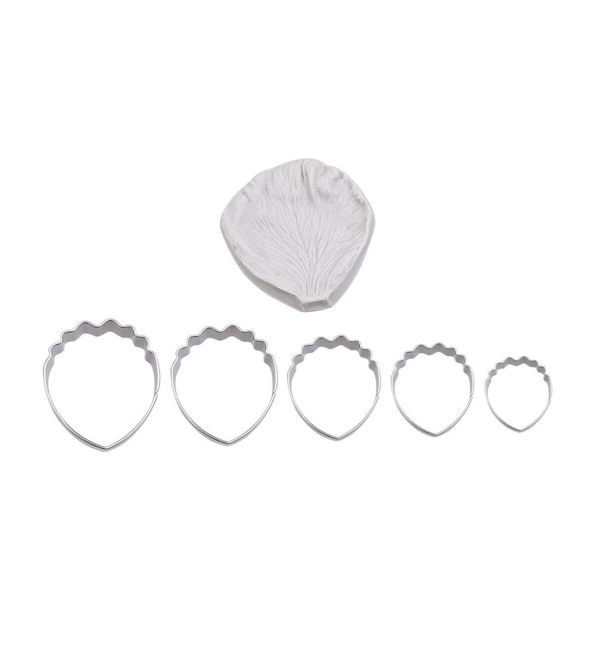 - silicone:3.03 in X 3.14 in X 0.78 in cutter 1: 2.48 inX 2.08 in X0.78 in cutter 2: 2.24 inX 1.888 in X0.78 in cutter 3: 1.96 inX 1.61 in X0.78 in cutter 4:1.65 inX 1.41 in X0.78 in cutter 5: 1.18 inX 1.18 in X0.78 in