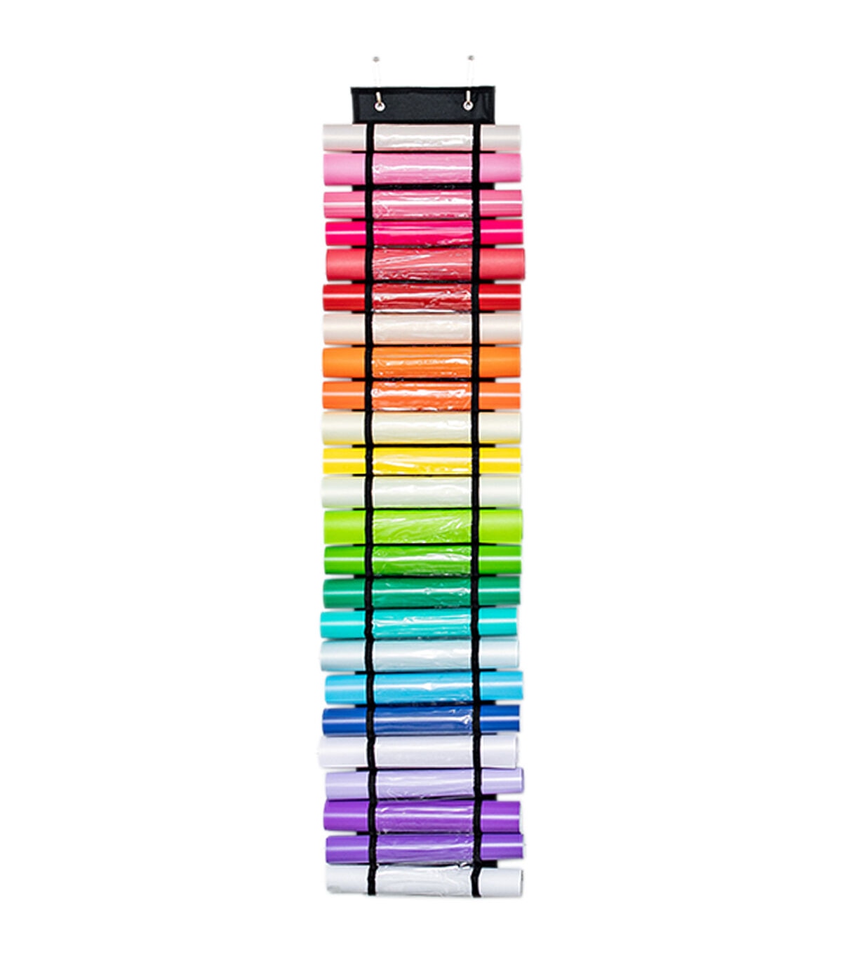 The Top Notch Hanging Vinyl Roll Storage Organizer with 48 Compartments will help find the vinyl you need easily. This hanging vinyl holder is designed with 48 clear compartments to store your vinyl rolls. You can use the strap provided at the top to hang it on any wall. It is made with durable materials and will save space in your crafting room.