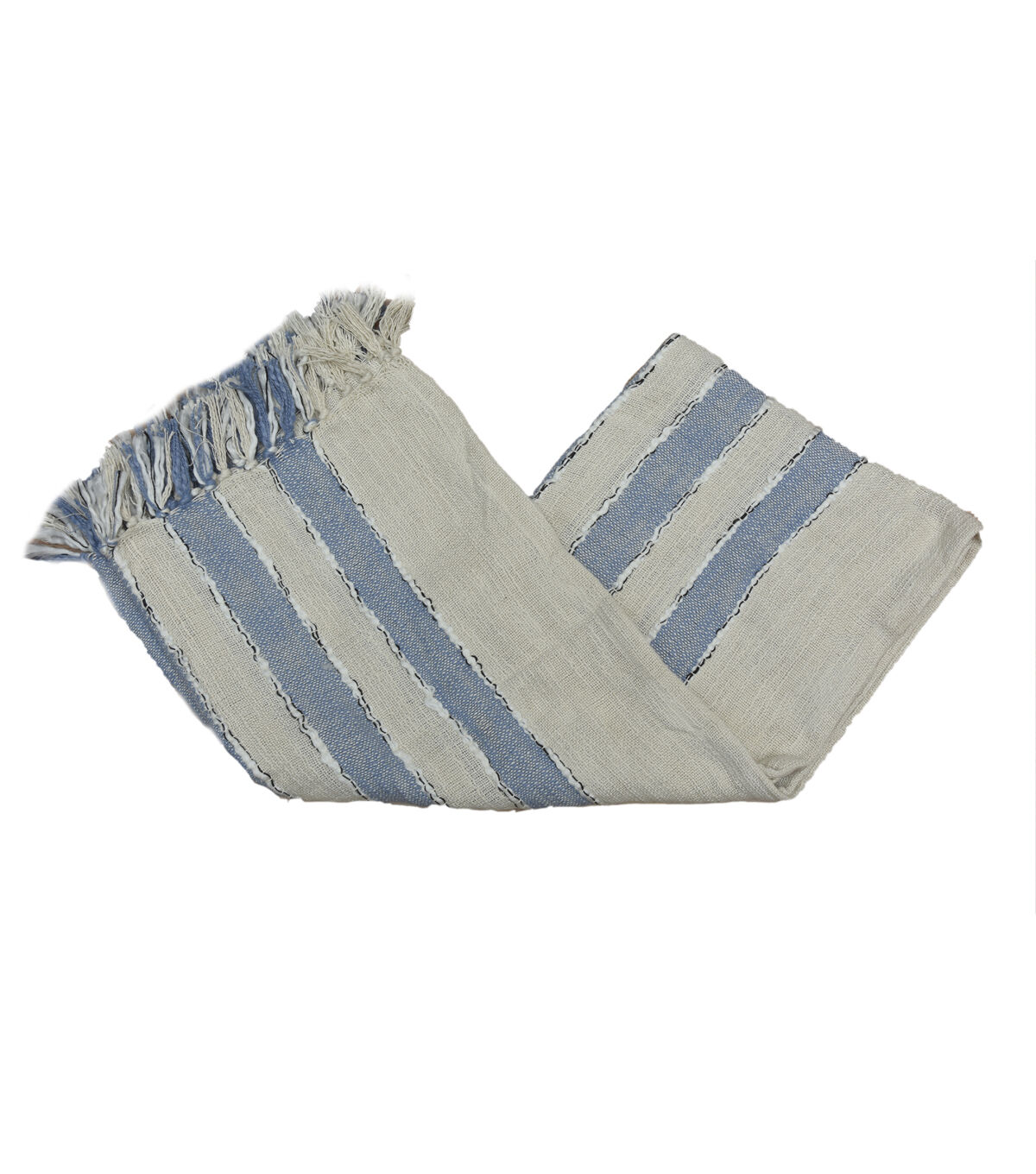 Soft and warm, the Spring Blue Striped Throw by Place & Time is an ideal choice for this spring. This beautiful throw sports a striped pattern in blue and white shades. Lovely fringes along its two edges complete it. You can place it on the armchair or couch to lend a cozy look to your reading corner.