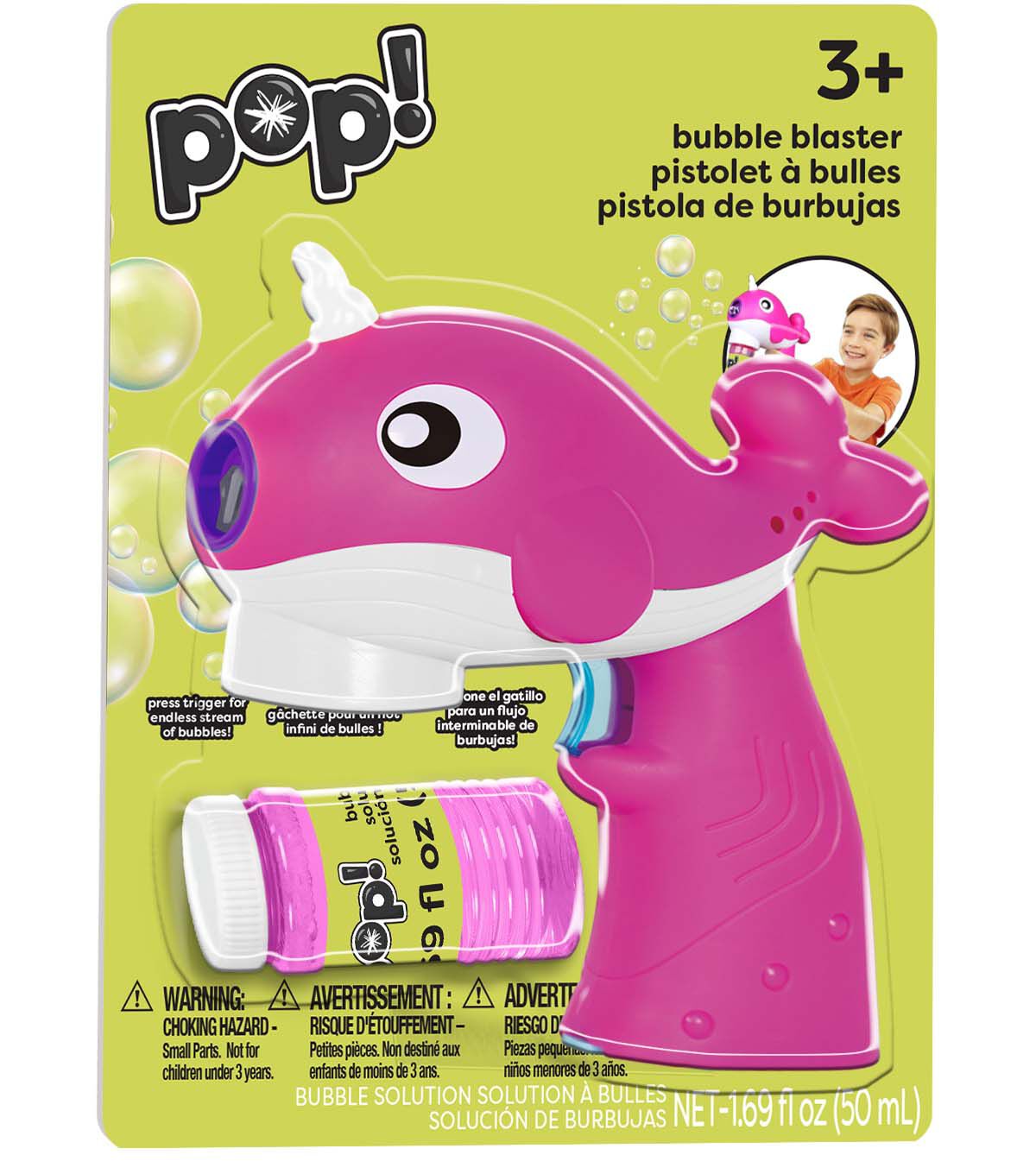 Get ready for tons of bubbles! Our Narwhal Bubble Blaster is great for summer fun! This toy is made for children 3+ with an easy pull button and no spill fun Narwhal design! Requires 3 AAA batteries.