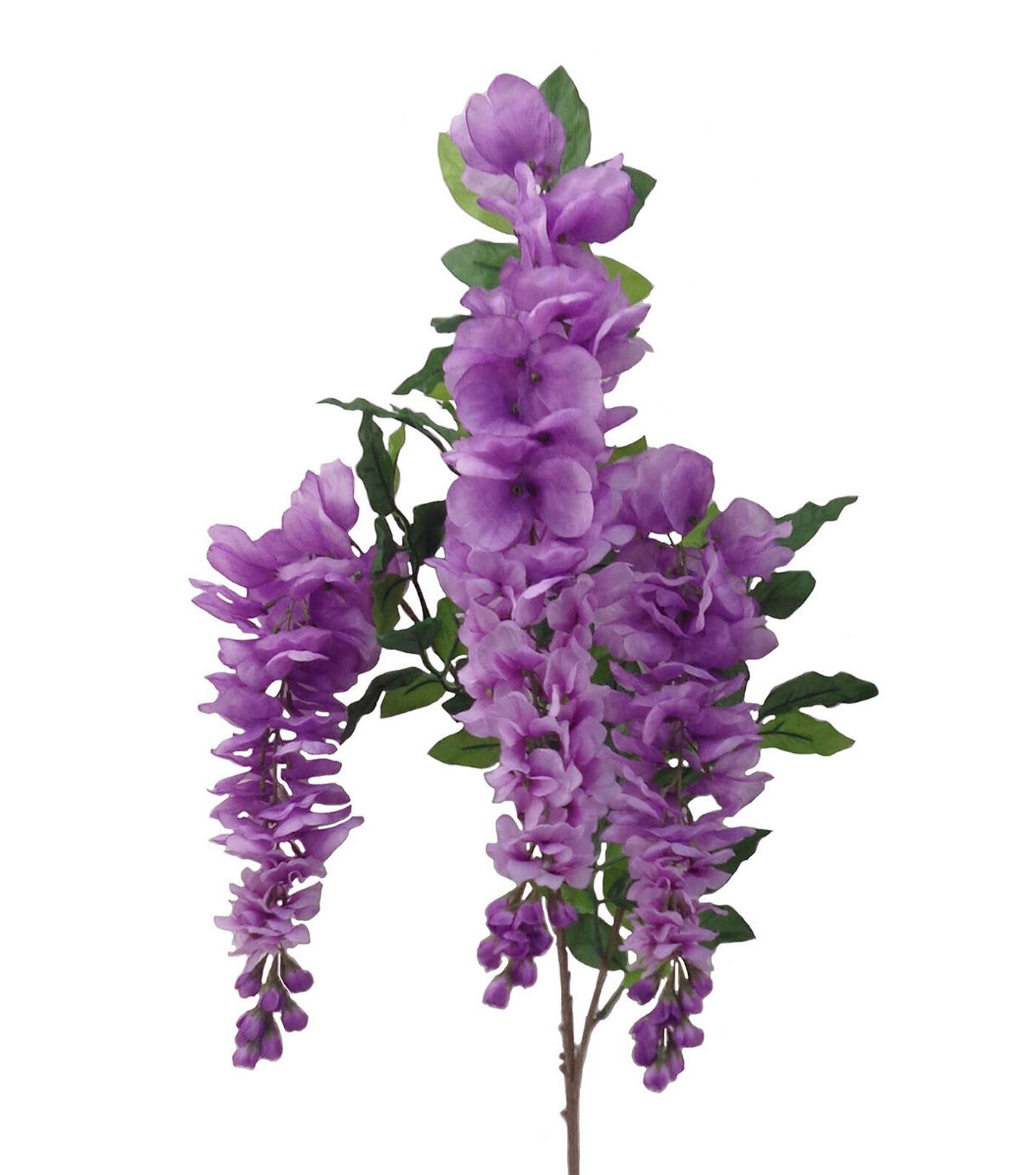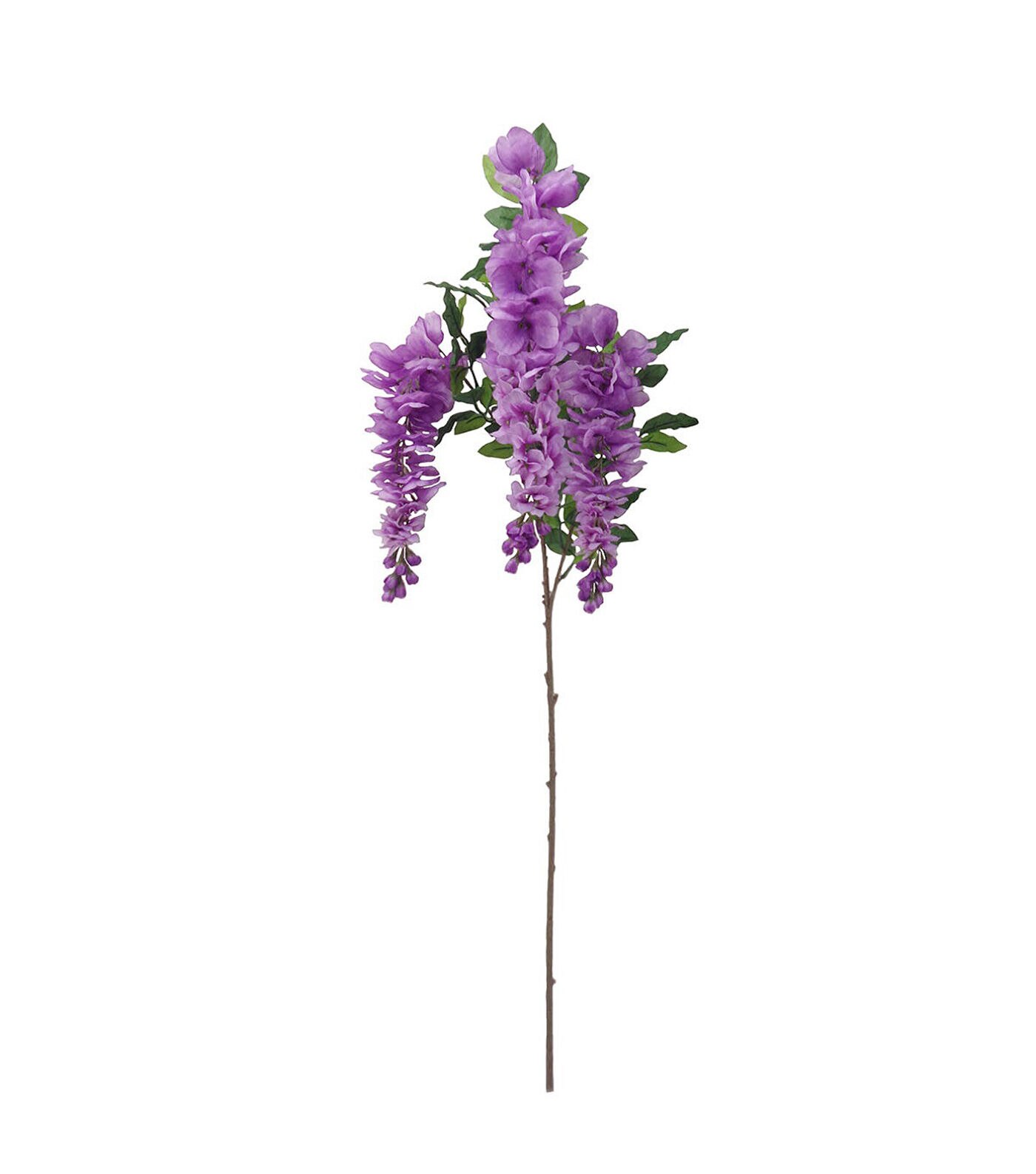 Give an instant makeover to your living space with the Spring Purple Wisteria Stem by Bloom Room. This decorative stem bears wisteria flowers in a vivid purple shade along with green leaves. Showcase it as is or team it with faux berry stems in contrasting hues to create a unique display.