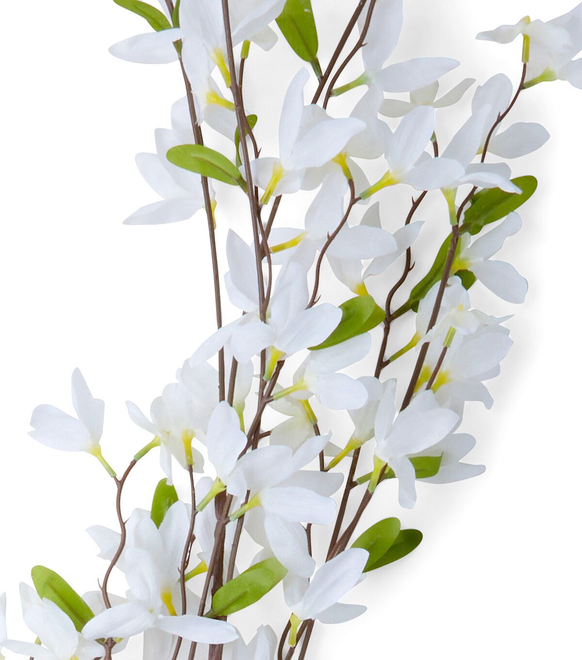The Spring White Forsythia Stem by Bloom Room is sure to complement your minimalistic home decor theme this spring season. This faux floral stem bears forsythia flowers in white and leaves in green. You can display it as is in a floor vase next to the foyer table or the fireplace. Team it with other floral stems in pastel hues for added visual appeal.