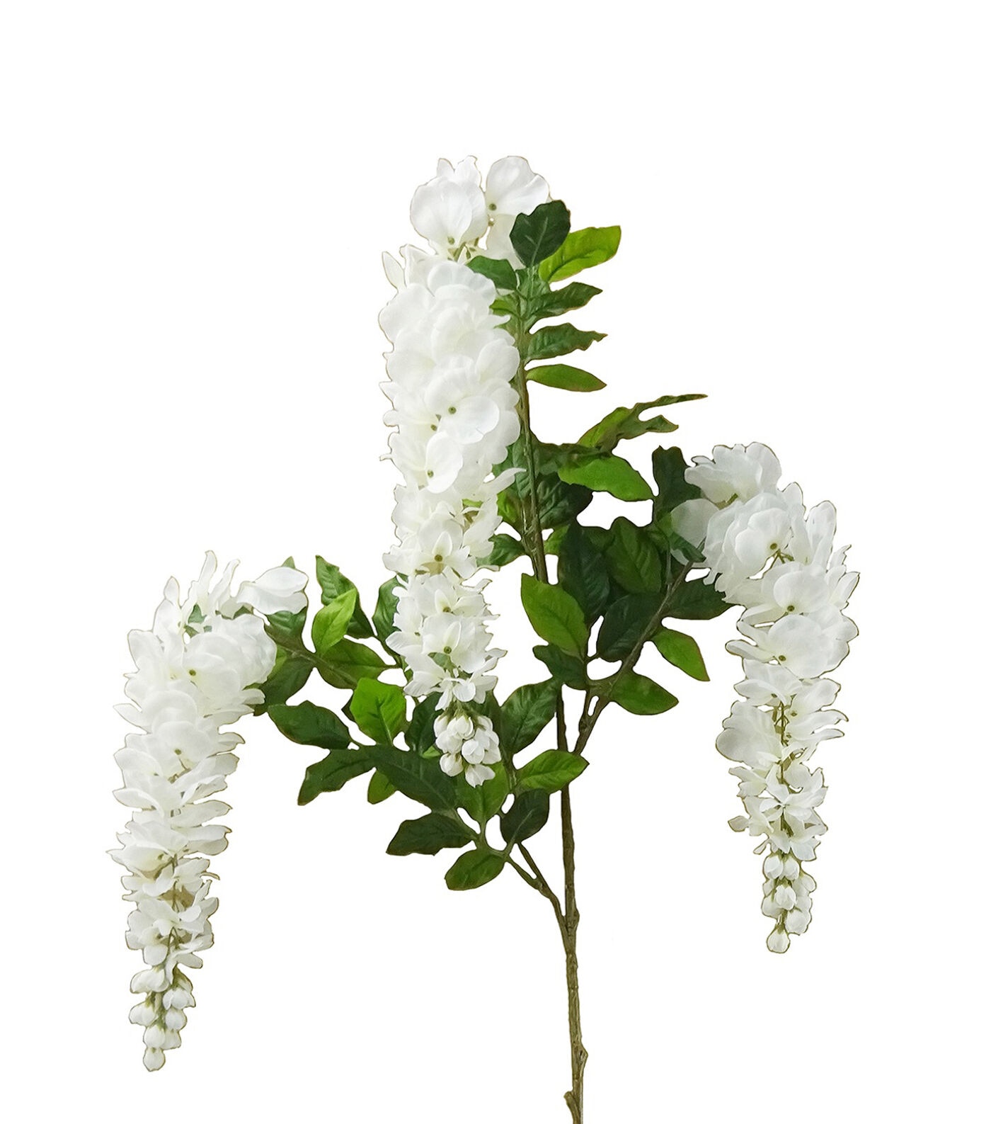 Add a touch of elegance to your springtime home decor with the Spring White Wisteria Stem by Bloom Room. Crafted with white wisteria blooms and green leaves, this faux floral stem is beautiful and will be perfect to display anywhere in the living room. You can team it with a galvanized floor vase for a rustic look.