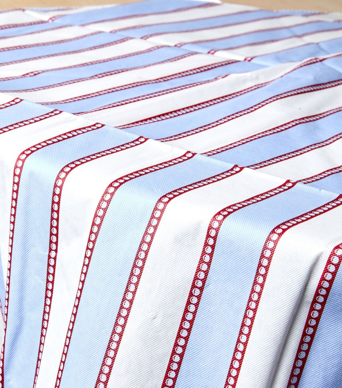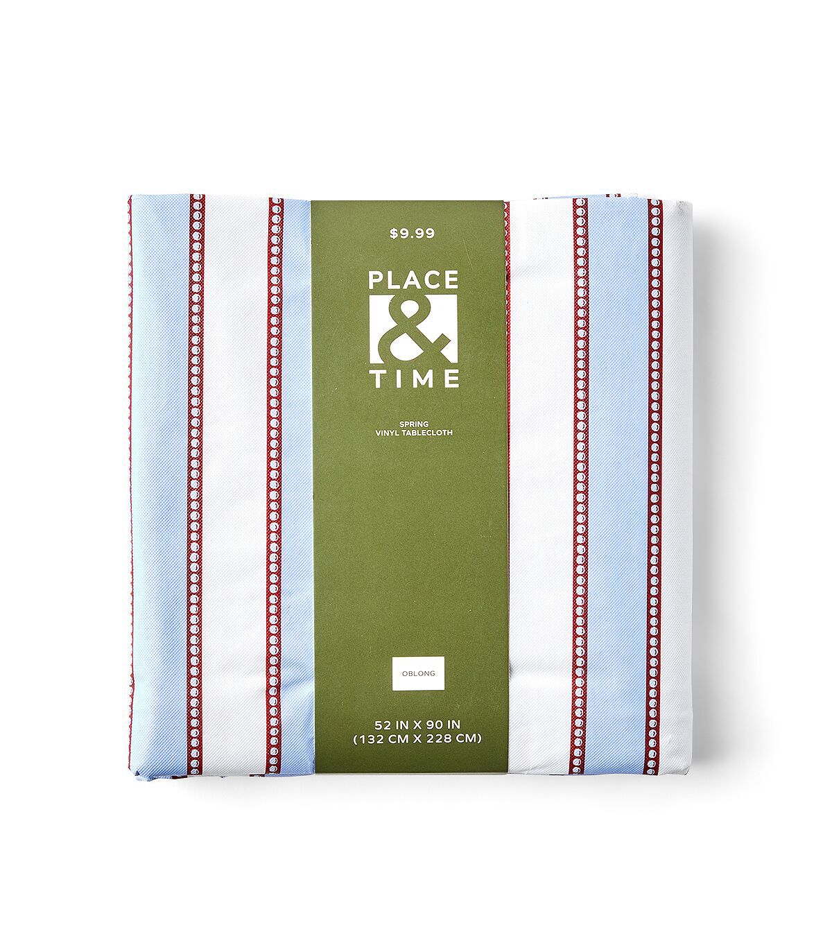 Finish off your spring table setting in style using the Spring Blue & White Stripe Tablecloth by Place & Time. This tablecloth displays a striped pattern in blue and white shades. The red lines between the stripes give it a contrasting look. All you need to do is place a vase of fresh flowers on it to complete the setup. You can also team it with seasonal serveware and gift them to a close friend who’s moving into their new home.