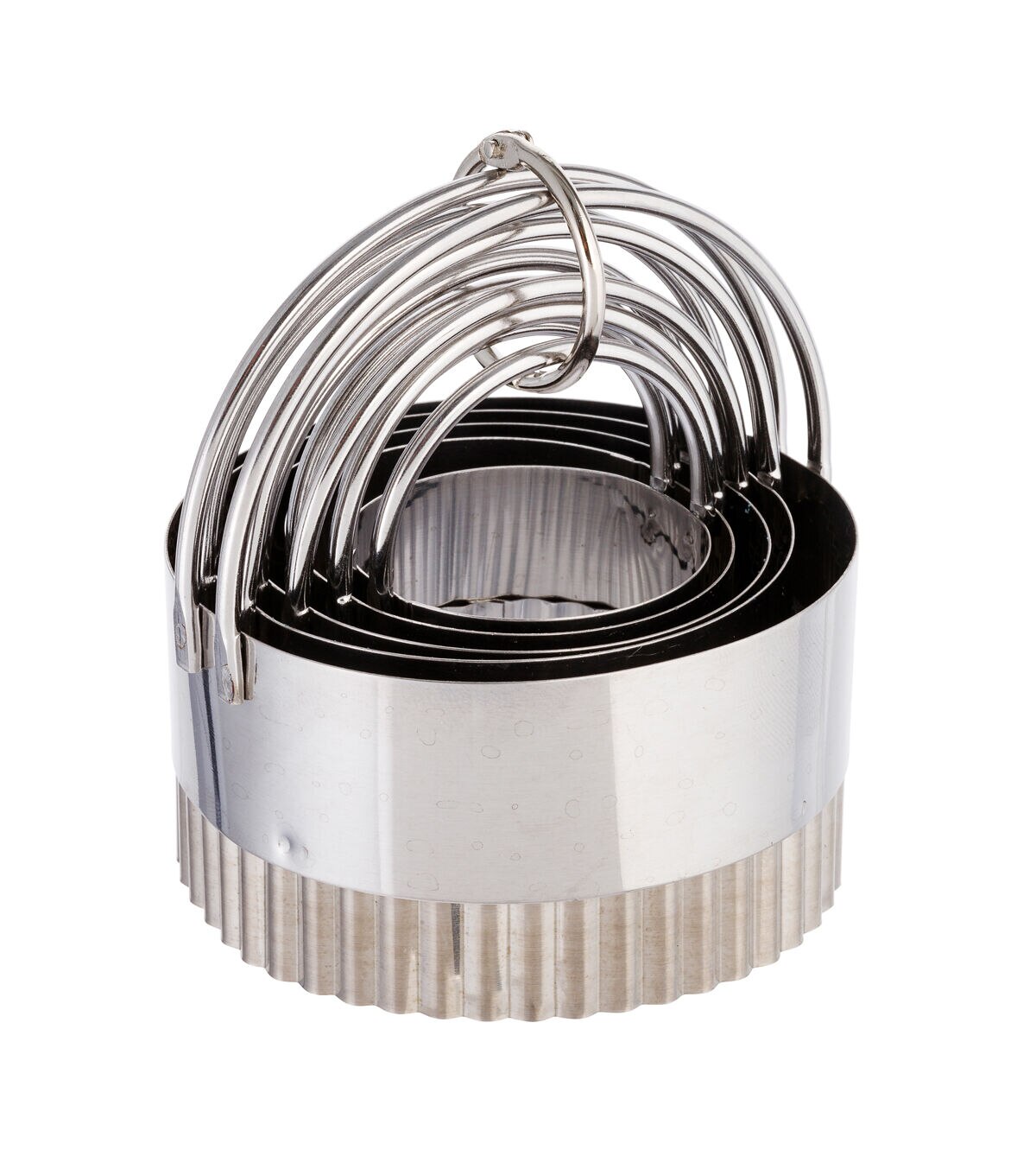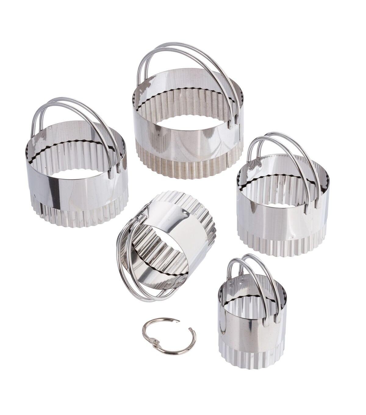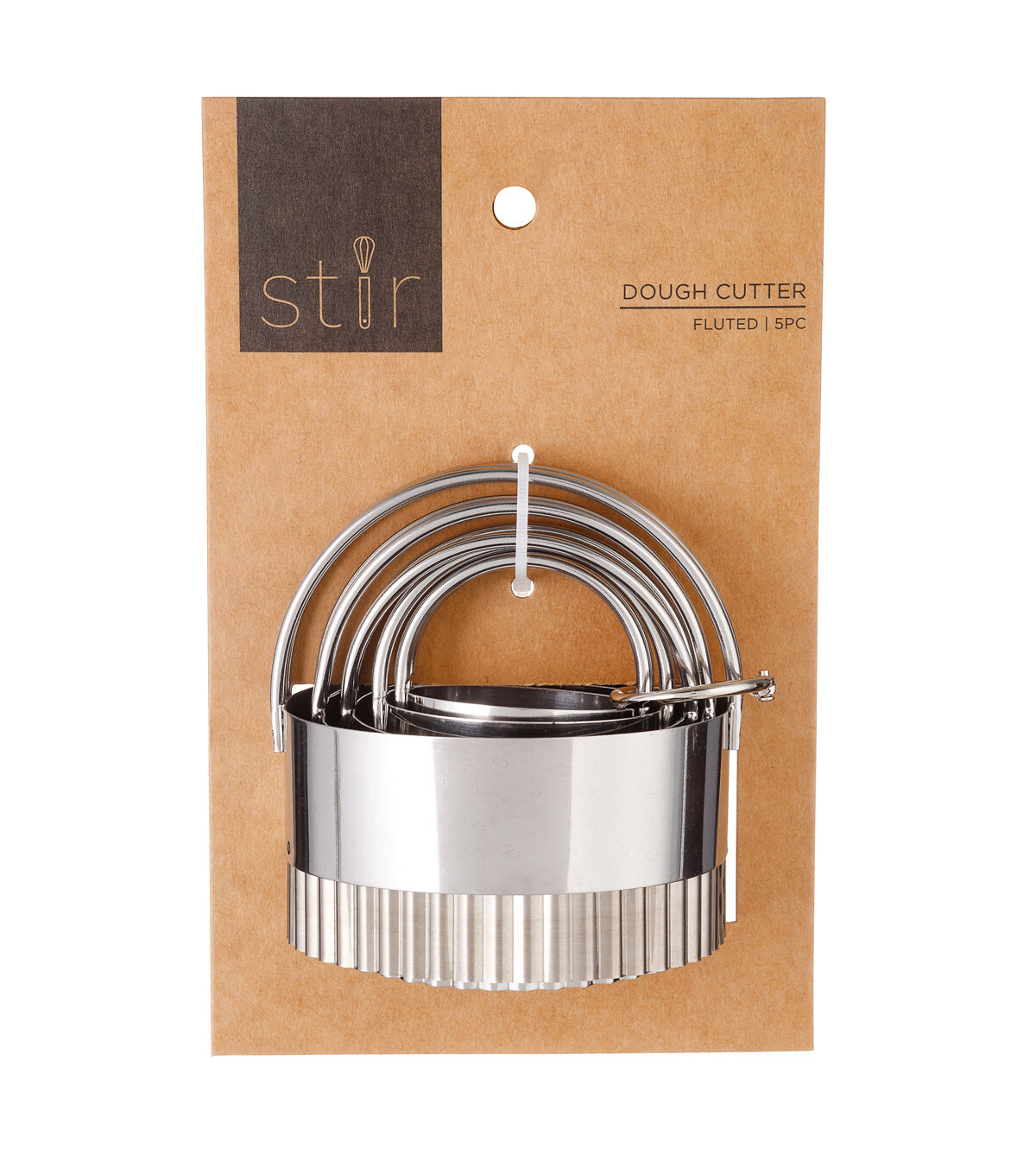 This dough cutter set is the ultimate baking tool. These fluted circle cutters come in 5 different sizes to accommodate all your needs. Durable stainless steel slices cleanly through any food, and the curved handles allow for easy maneuvering. You don't even have to worry about storage; the cutters nest to save space!