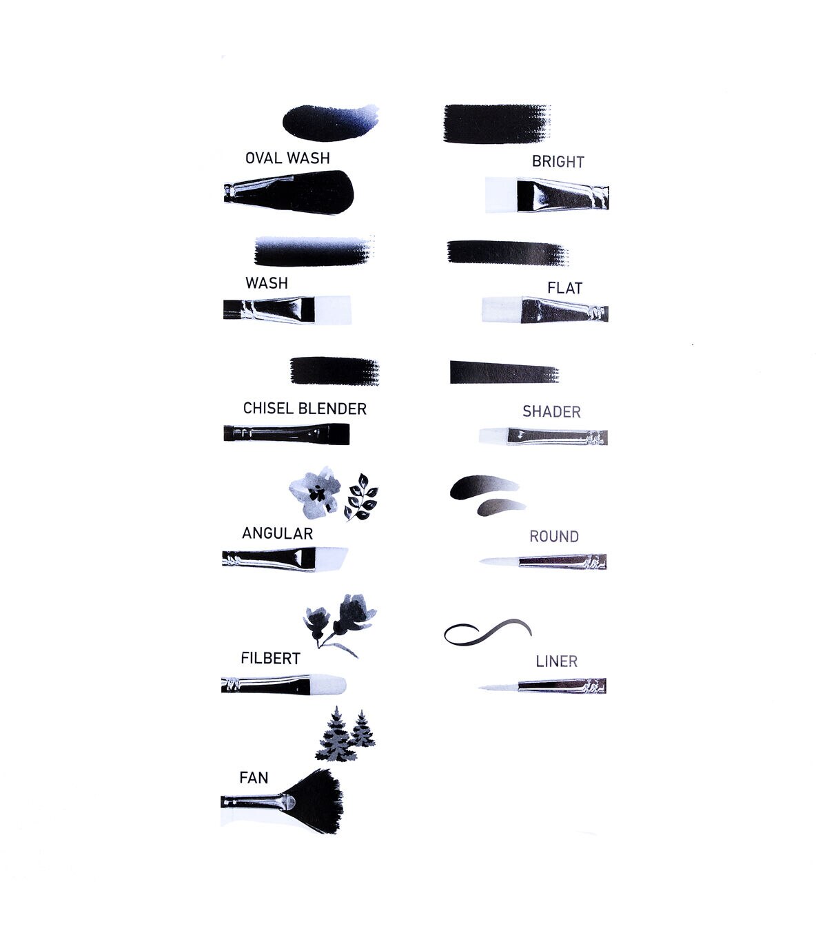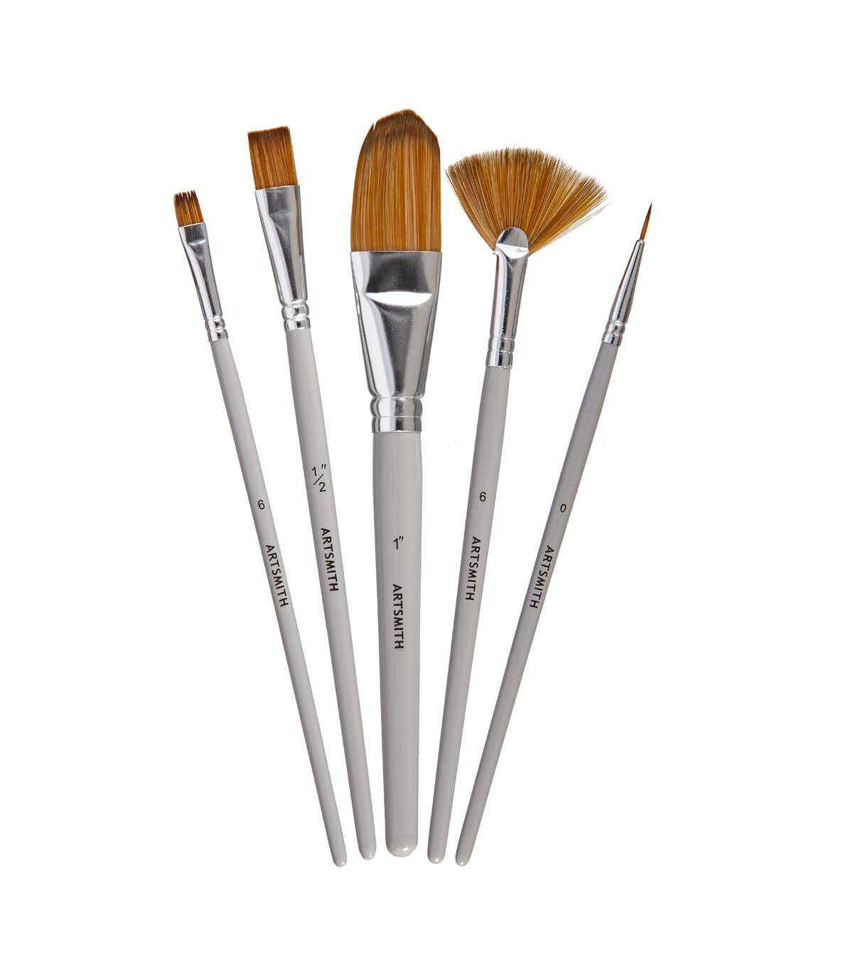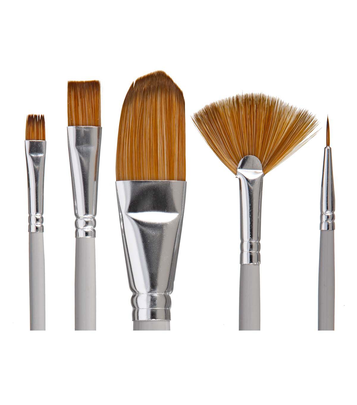 An assortment of angled brush sizes make these brush sets ideal for beginning artists.