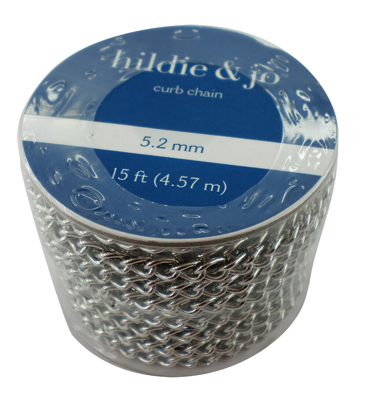Make your own jewelry and design necklace or bracelet collections starting with this hildie & jo Large Link Iron Curb Chain-Silver. Add hildie & jo cord, findings, charms and beads for a beautiful, one-of-a-kind look. The chain is 5.2 mm wide and 15 feet long.