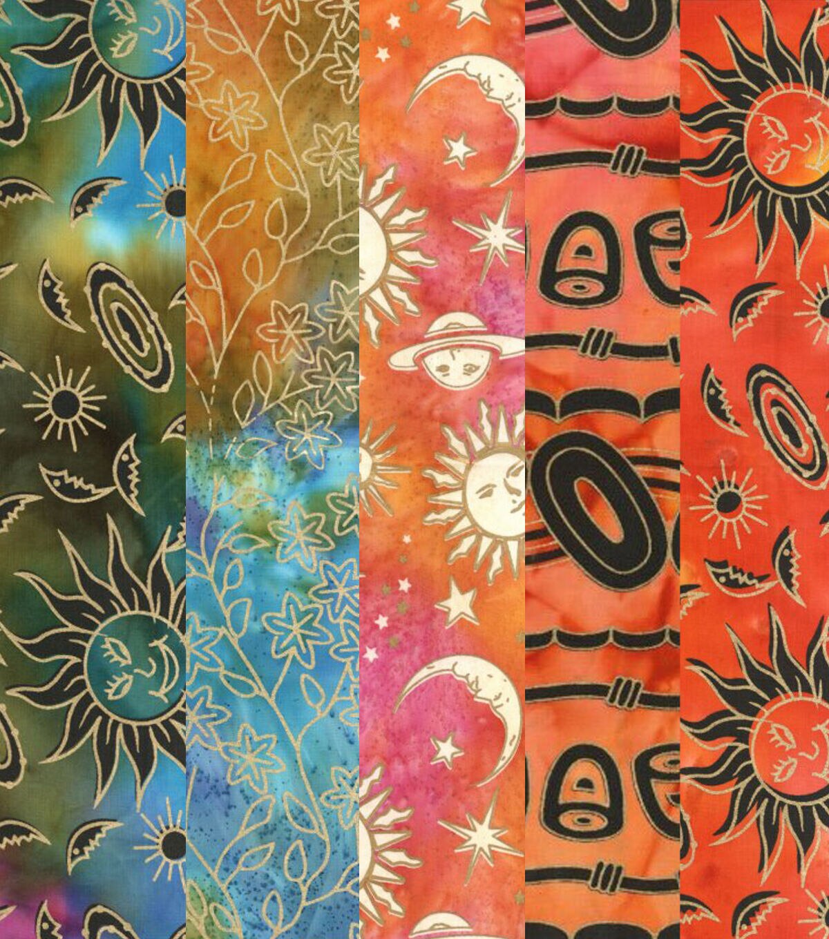 Get Creative with 5pc Celestial Warm Batik Metallic Cotton Fabric Quarter Bundle
