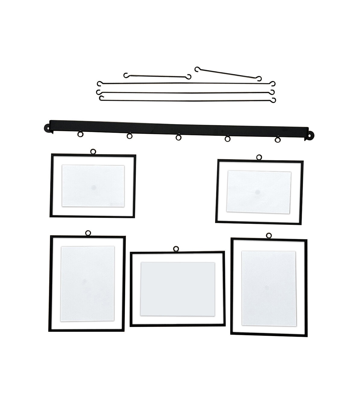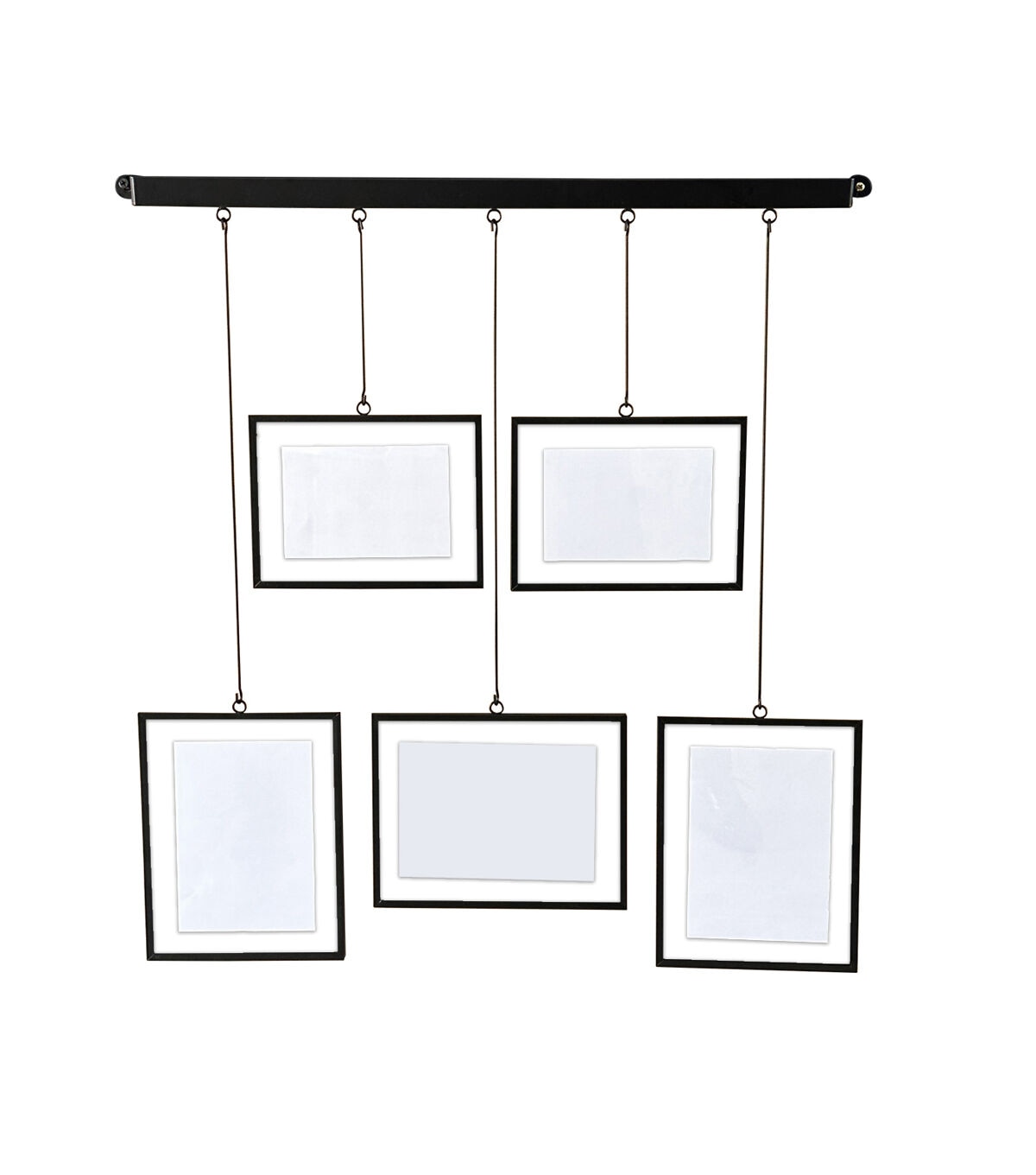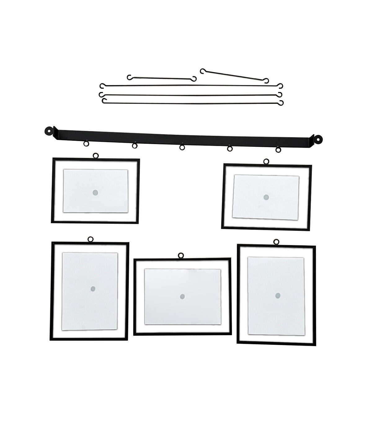 Display your favorite photos in style using the Hanging Gallery Float Frame Set With Hardware by Place & Time. This gallery frame set includes five black photo frames in different sizes, a rod and metal connectors of varied lengths. It comes with instructions and hanging hardware to make installation a breeze. Team it with other coordinating wall frames and display them on a living room wall.