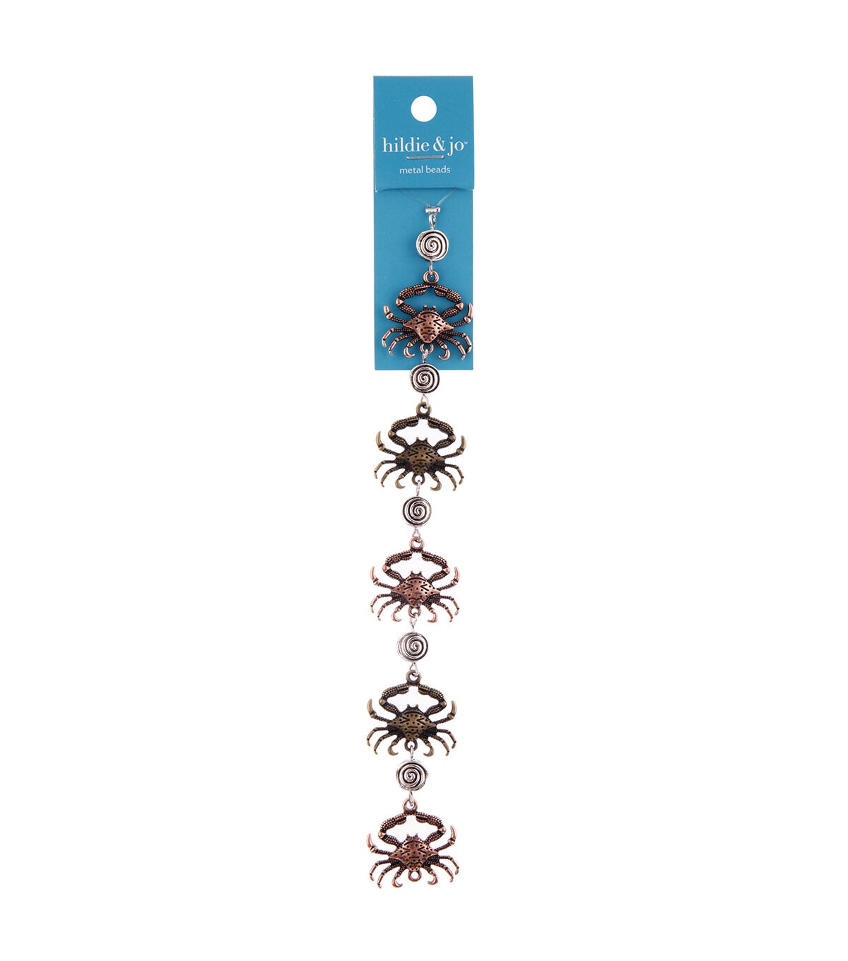 Design a beautiful sea-themed necklace using hildie & jo Metal Crab Strung Beads. This strand contains metal charms shaped like crabs. You can club them with other sea-inspired beads or charms to enhance the visual appeal of your bracelets, anklets, keychains and more.