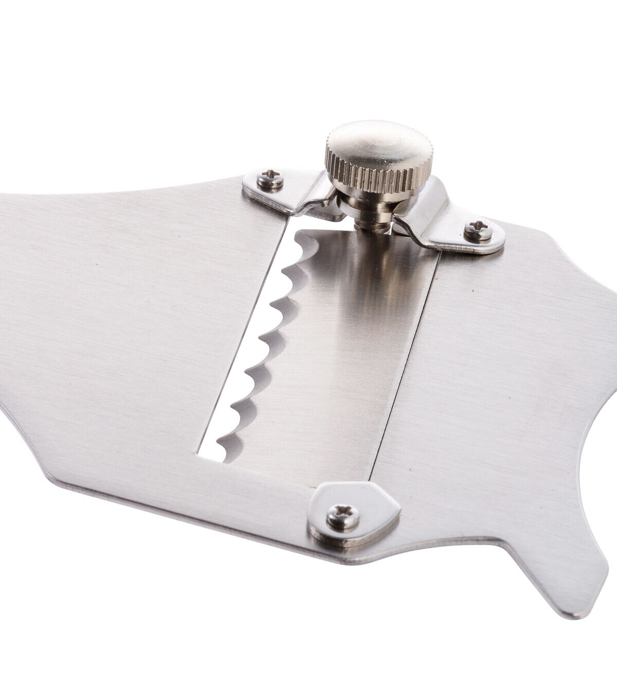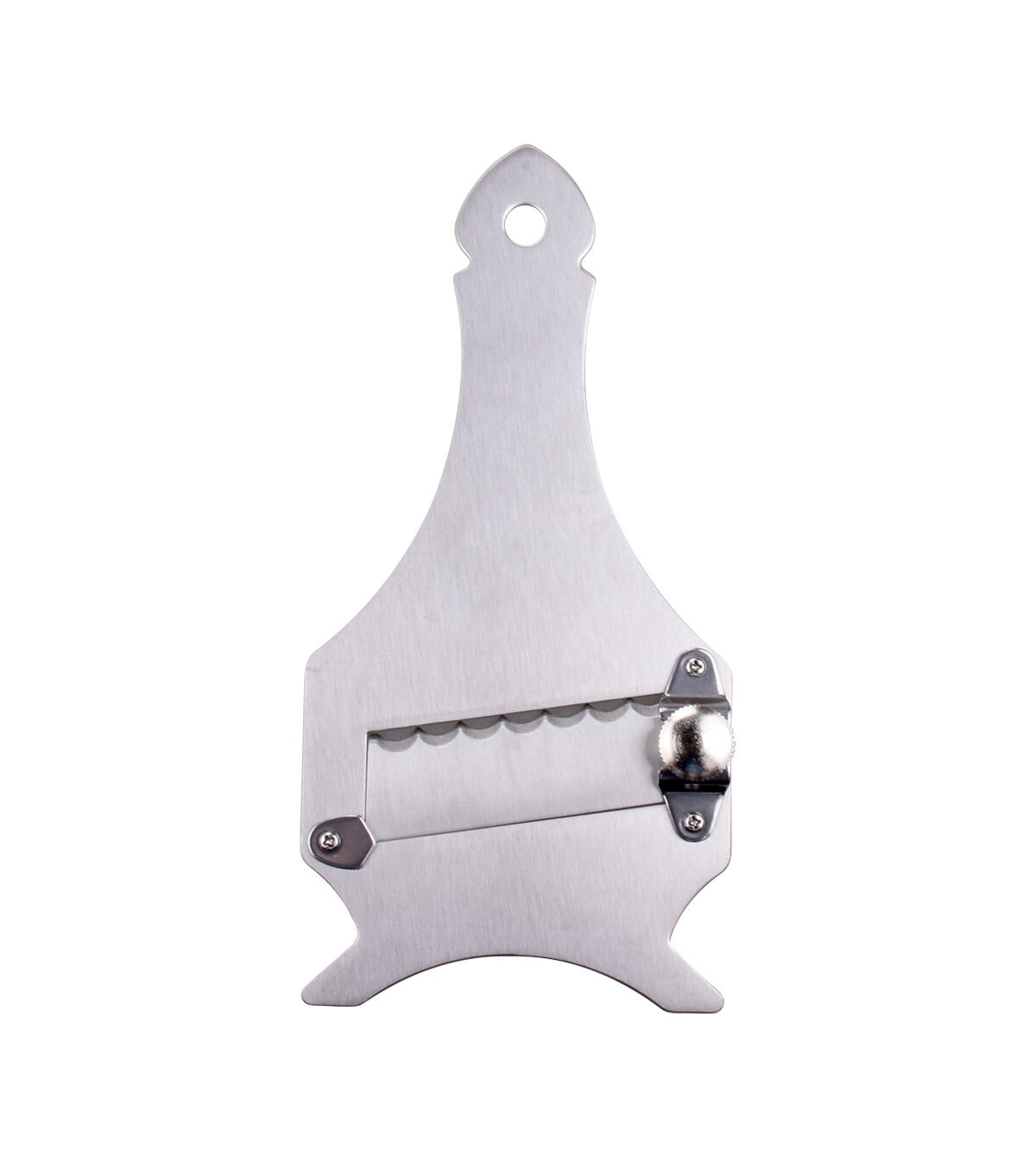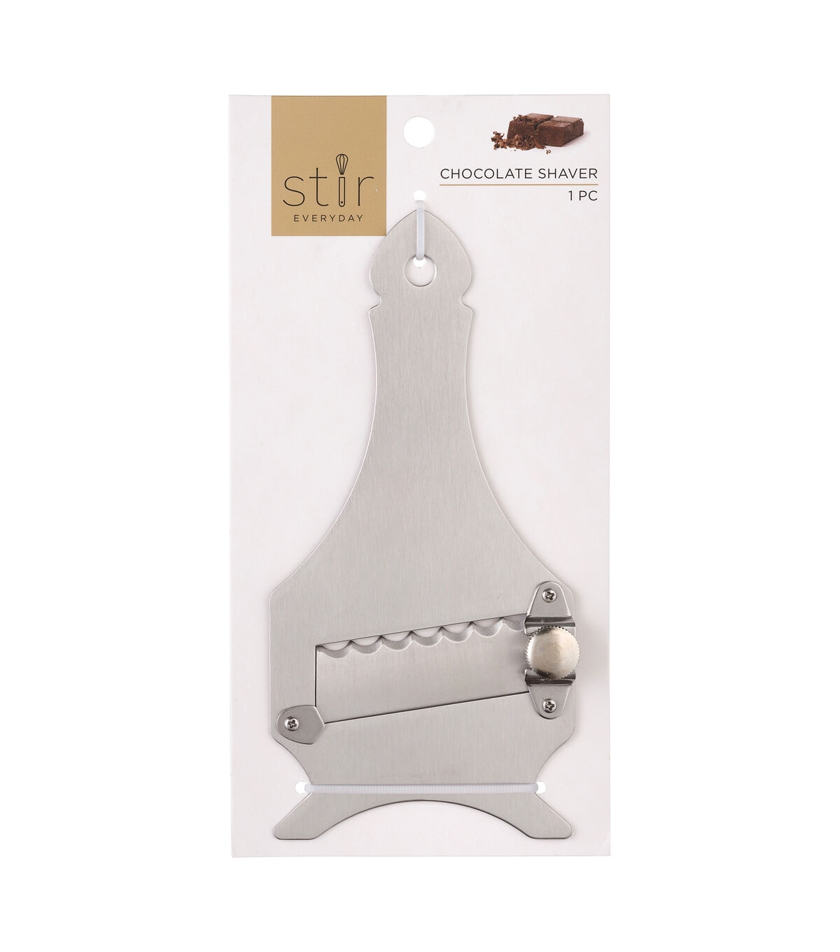 Shave chocolate into beautiful curls with this stainless steel shaver. The sharp blade creates clean, uniform slices every time. It is also conveniently adjustable, so you can control the thickness of the shavings. Use this shaver with everything from chocolates and truffles to cheese and more!