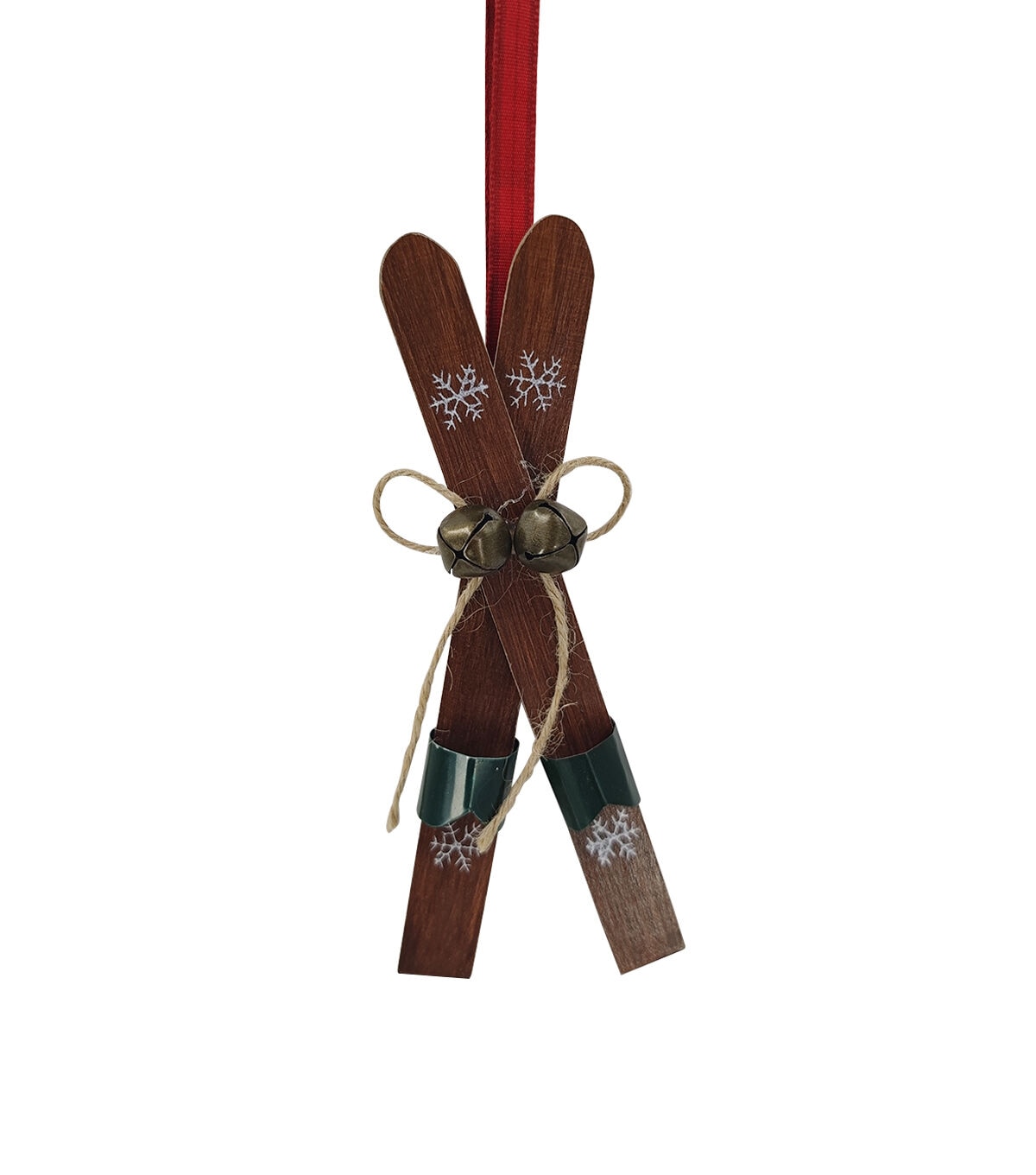 Enhance your holiday decor with wintry accents like the Christmas Wood Skis Ornament by Place & Time. Sporting a brown shade and a print of snowflakes in white, this wood ski ornament will remind you of your holiday in the Alps. It is adorned with a twine bow and jingle bells. Simply hang it from one of the branches of your tree and enjoy the seasonal vibe it brings along.
