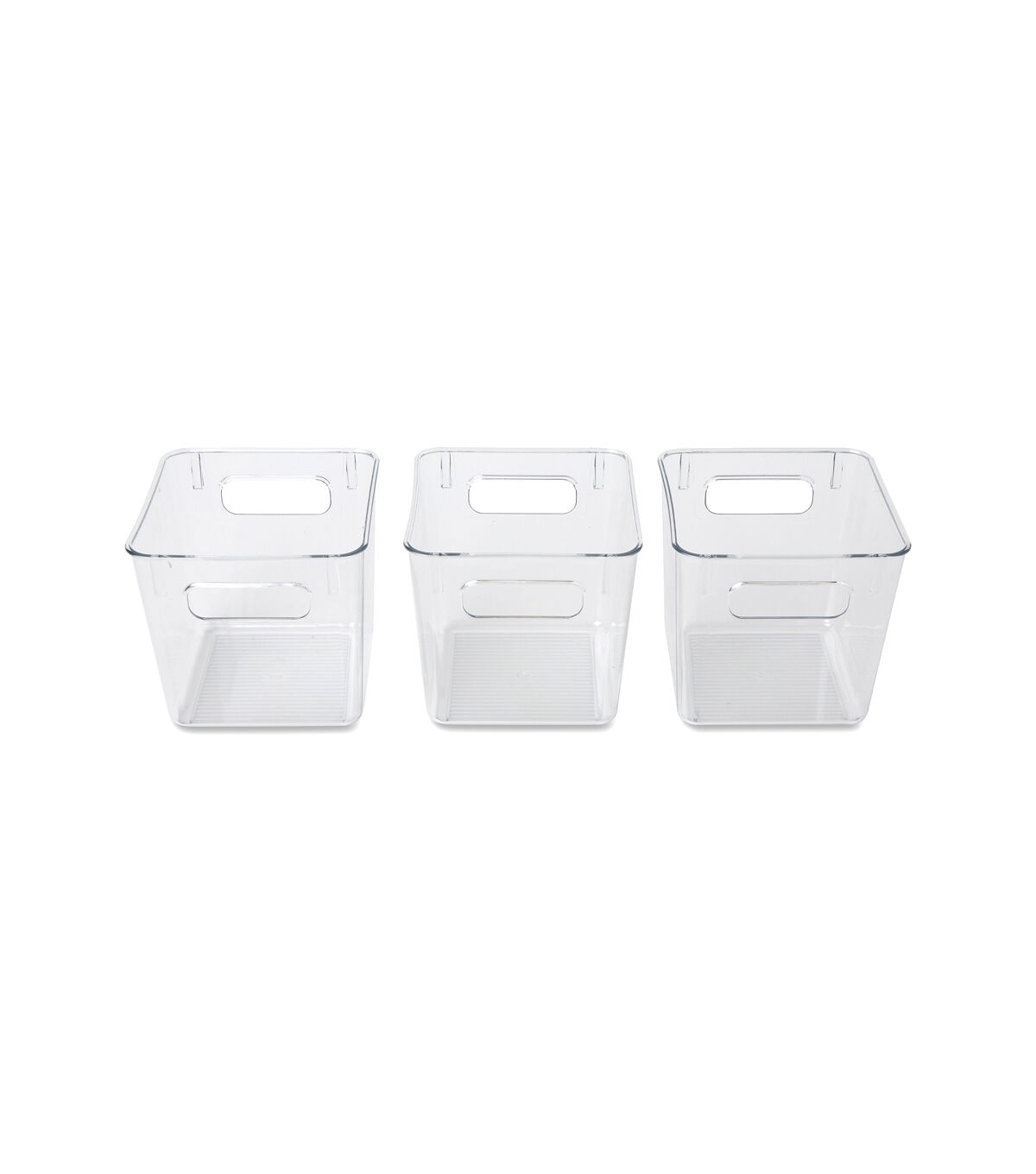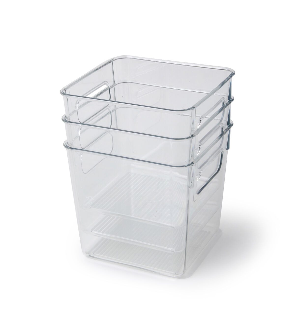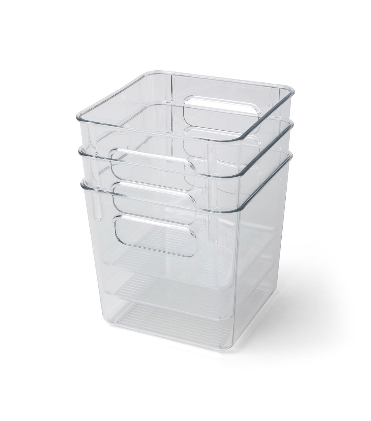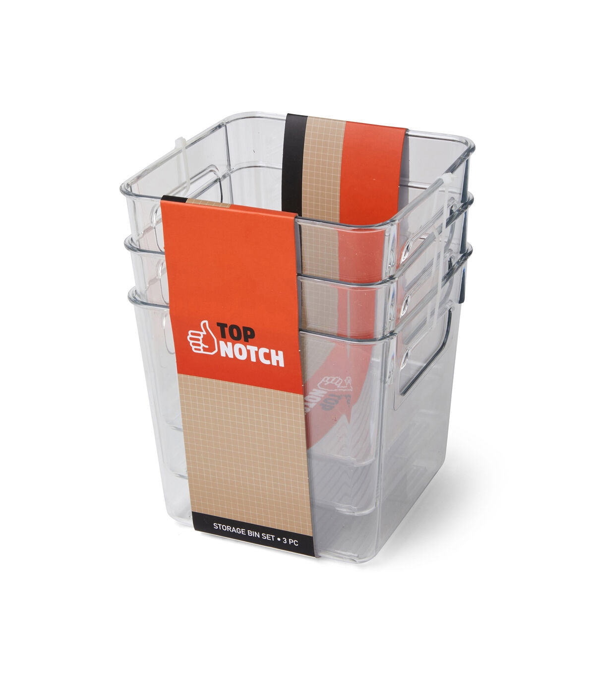 Increase storage space using the Top Notch Small Plastic Storage Bins - Clear. These storage bins are perfectly sized for your refrigerator, study table or kitchen cabinet. You can use them to organize snacks, fruits, stationery, small bottles and more. They are made of clear plastic and designed with cutouts for easy carrying.