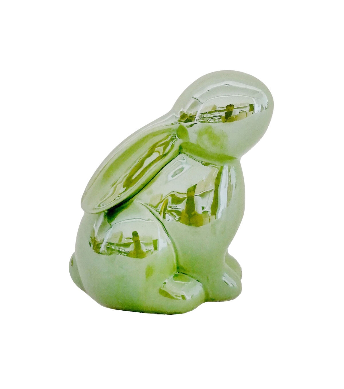 Liven up any table decor with the Easter Green Pearl Ceramic Rabbit by Place & Time. This bunny-shaped ceramic accent sports a green shade and a glossy finish. You can showcase this cute tabletop accent as is or team it with coordinating Easter-themed accents to put together an interesting display. It will also make a perfect gift to your close friend this Easter.