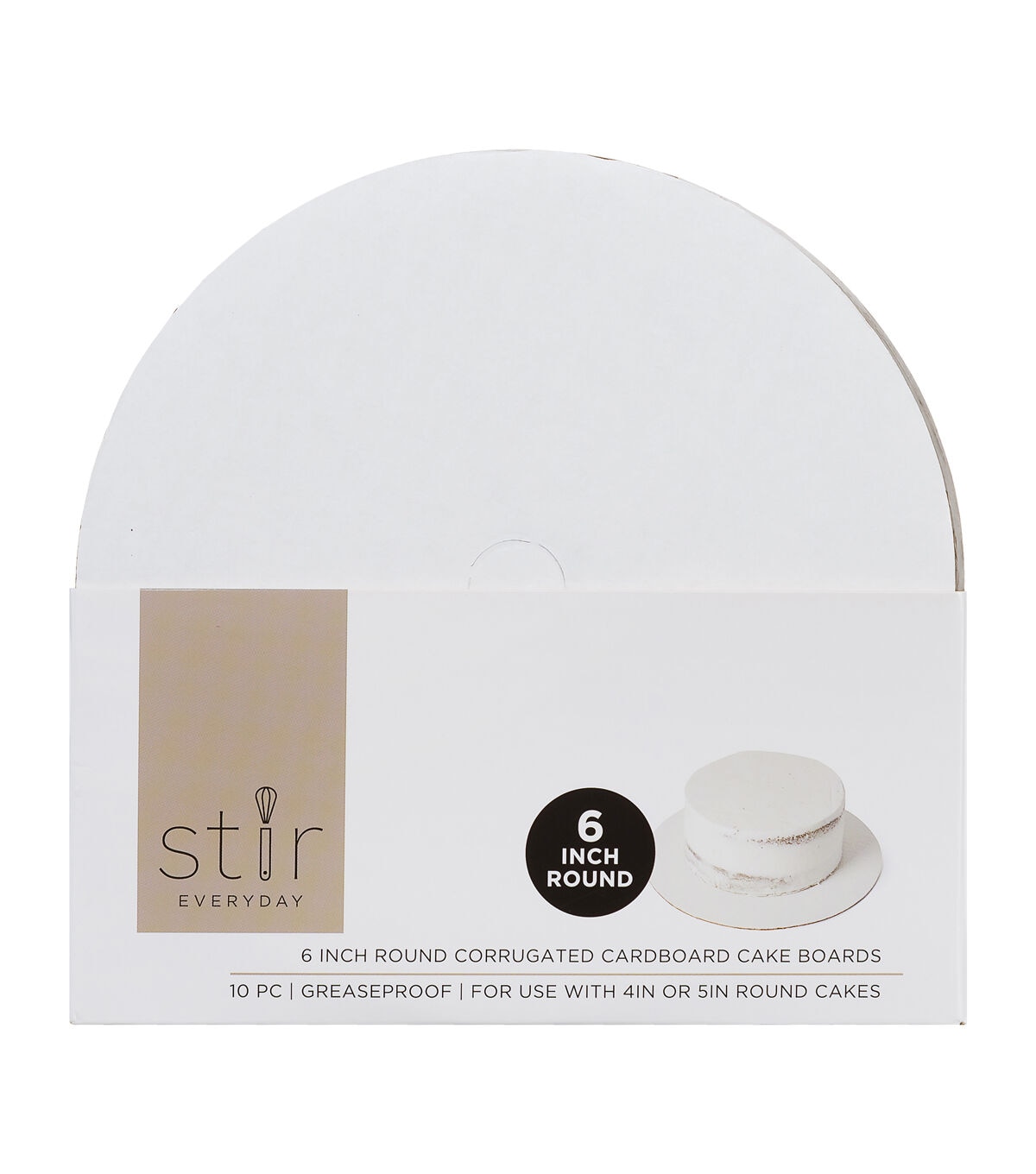 Cake decorating and displaying will be easy with the STIR Everyday Round Corrugated Cardboard Cake Boards. These sturdy, round cake boards are made from corrugated cardboard and will not bend or get soggy easily. This pack includes ten 6-inch greaseproof cake boards that you can use with 4-inch or 5-inch cakes.