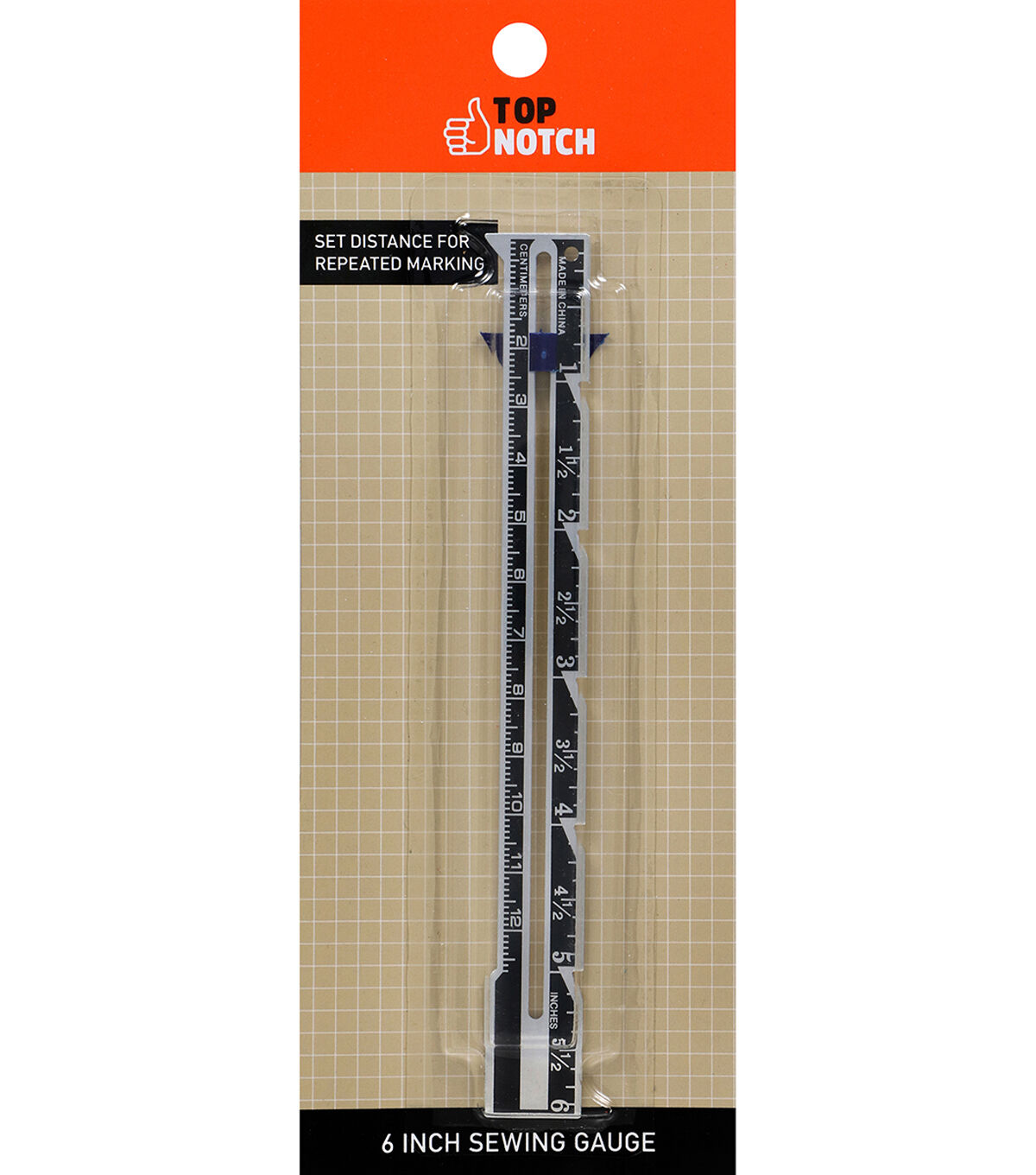 The Top Notch 6” Sewing Gauge is one of the most functional and versatile sewing accessories you can add to your sewing kit. Whenever you need to mark a precise distance multiple times, this stylish seam guide ruler will help you measure like a pro. This sewing gauge will come in handy for any number of sewing projects. Use it to measure and mark seams and hems at exactly the right distance every time. Evenly space your buttonholes, pleats, or tucks with easy precision. You can even set a pin in the sewing gauge’s hole and use it like a compass to mark perfect circles or scallops on your fabric for decorative sewing projects. With so many ways to use this handy sewing accessory, the Top Notch 6” Sewing Gauge makes a great addition to any dressmaker’s sewing kit.