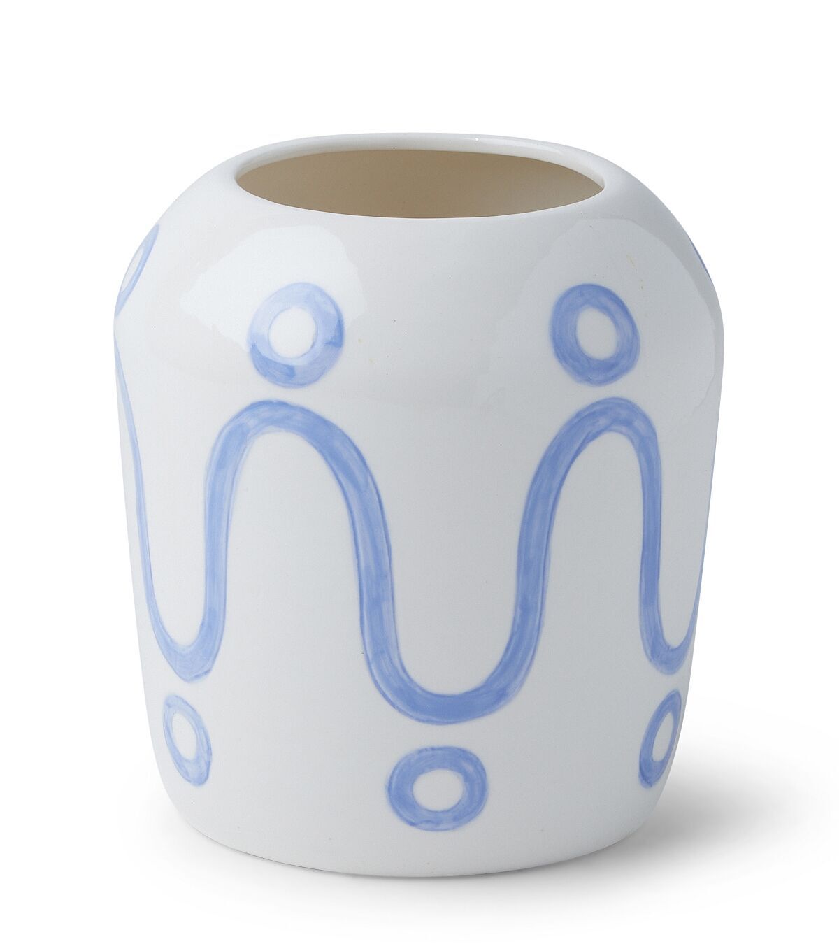 Plant your favorite seasonal beauties in the Spring Blue Squiggle Lines on White Planter by Place & Time and use it to decorate your spring home decor. Flaunting squiggle lines in blue on a white base, this ceramic planter looks beautiful. You can display it on any table in your home or gift it to a plant lover.