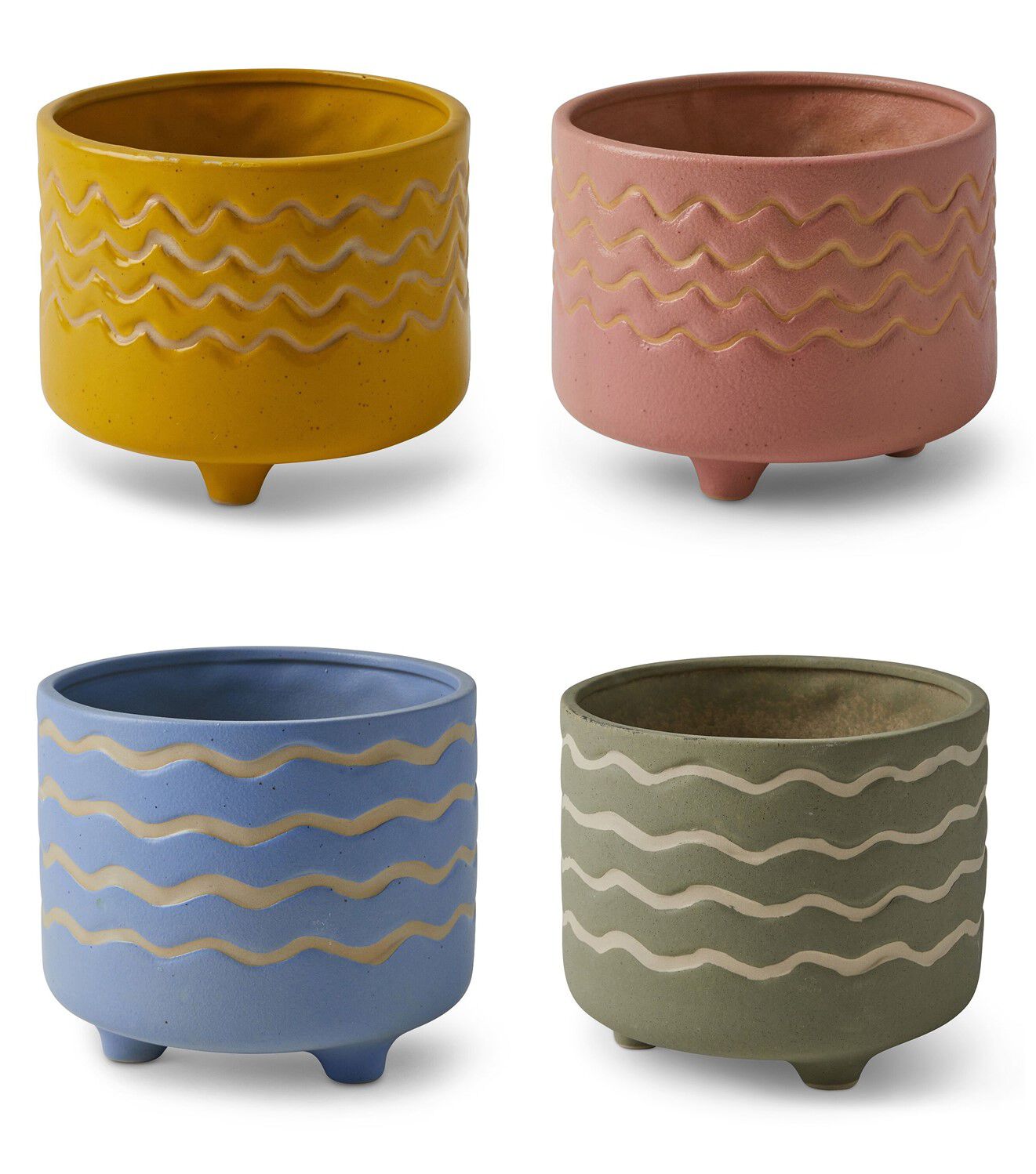 Add a pop of color and style to your garden or home with the Spring Rick Rack Ceramic Planter by Place & Time. This planter features a vibrant hue and an engraved rick-rack pattern that adds a touch of whimsy to your space. The short legs make it easy to display anywhere, whether on a windowsill or as part of a larger outdoor display.
