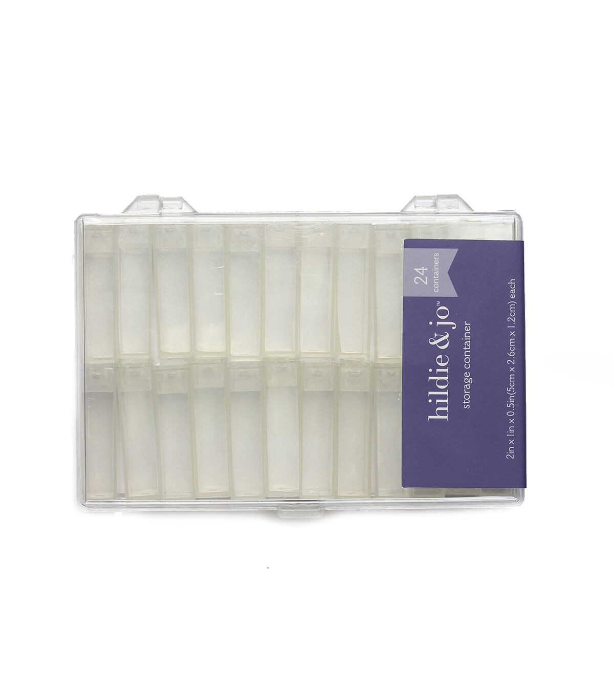 Organize tiny beads, rhinestones and baubles in the Flip Top Canisters. This package includes 24 storage boxes in one storage container to separate beads and baubles as per color, size and design. Made of clear plastic, these storage canisters are sturdy and durable. The small storage boxes come with flip-top lids for easy access, and the big storage container features hinged lid to secure the contents.