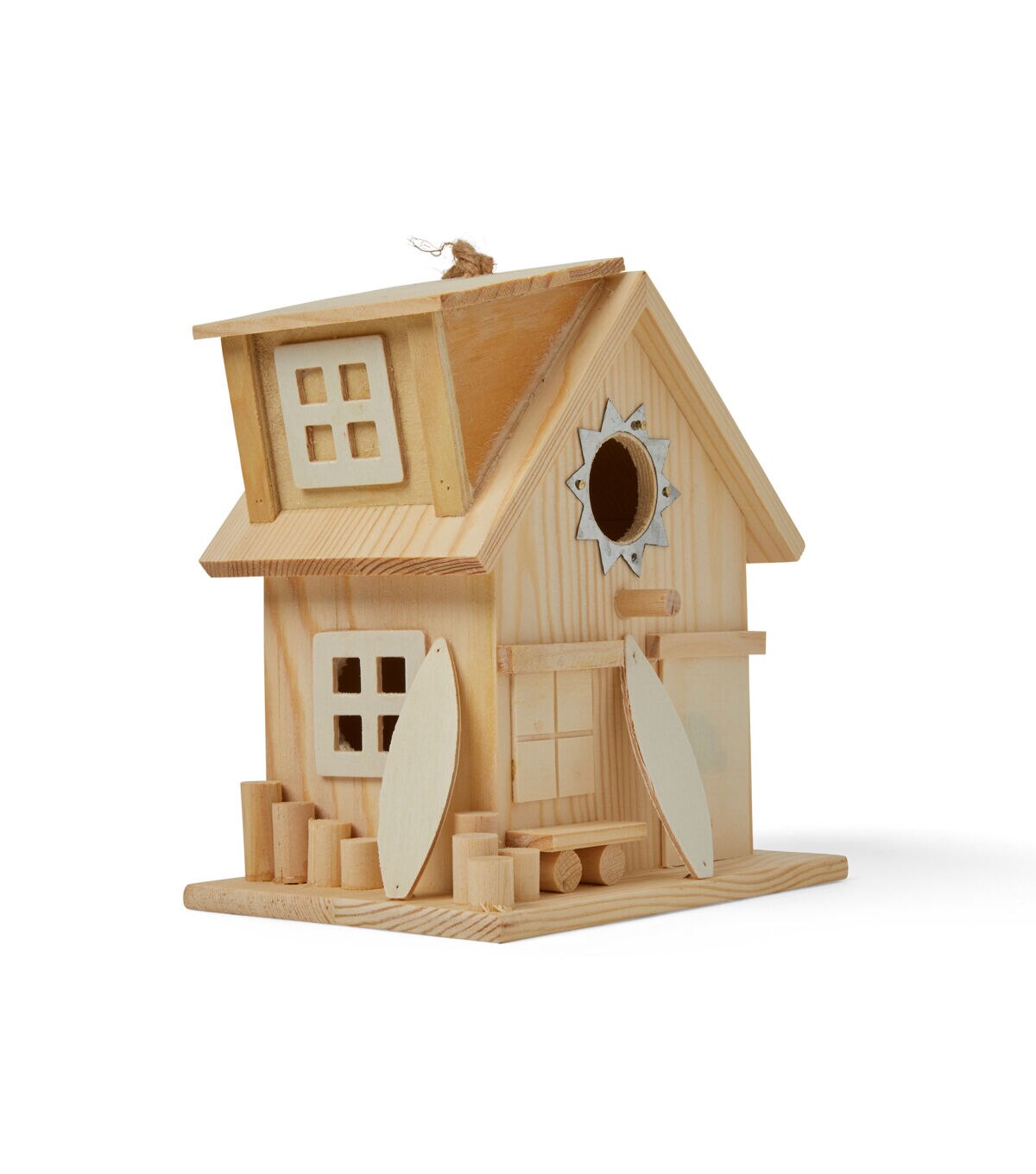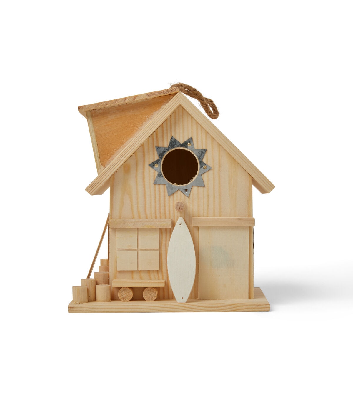 Add a summery touch to your home decor with the quirky and chic Park Lane Unfinished Wood Surf Shack Birdhouse. This unfinished wooden birdhouse is shaped like a surf shack. It comes adorned with a metal cutout around the opening for visual flair. You can also paint and adorn it with paper embellishments and make a lovely housewarming gift for a loved one this season.