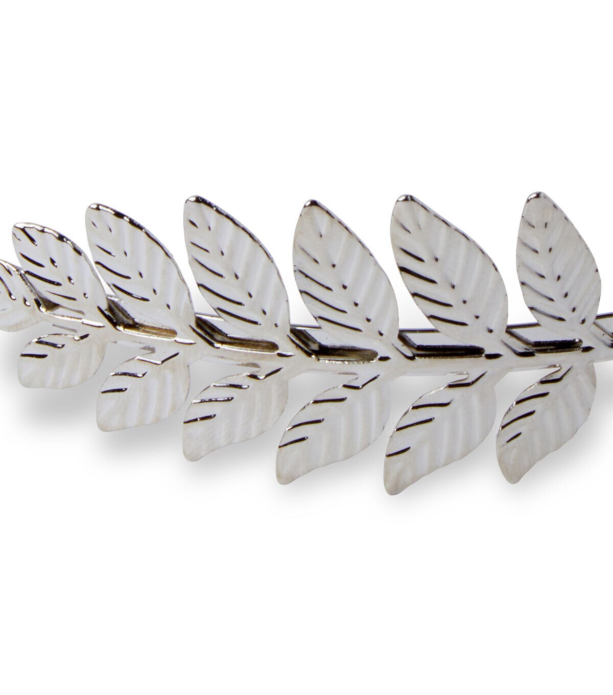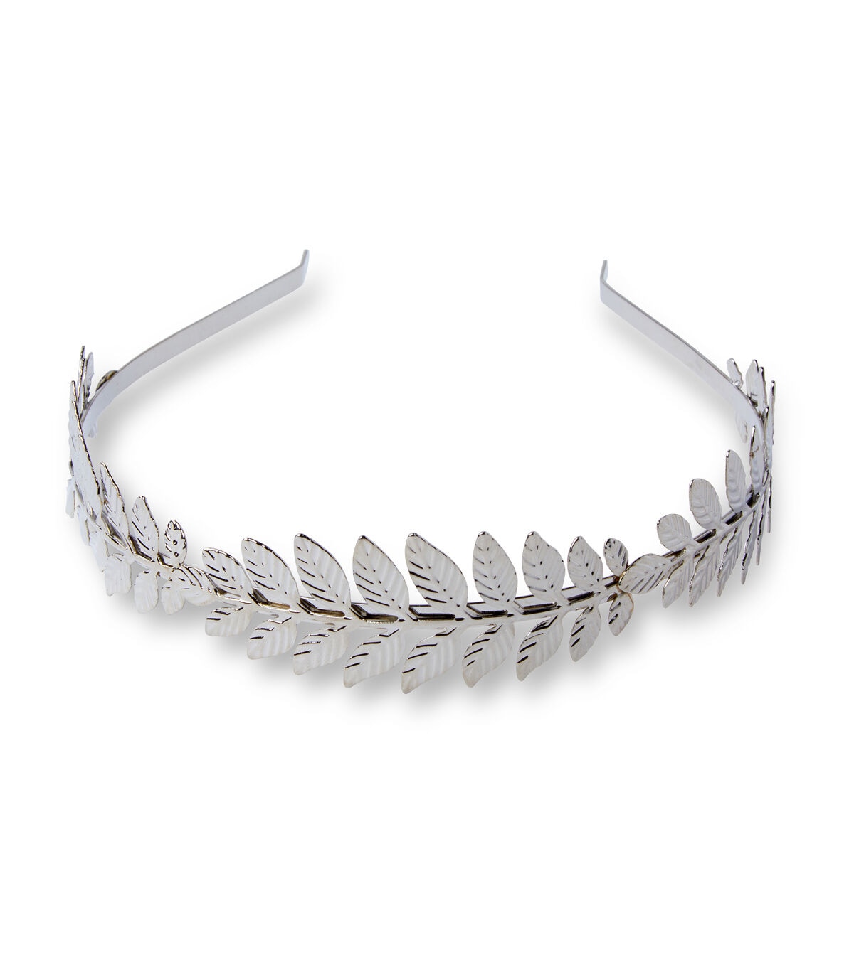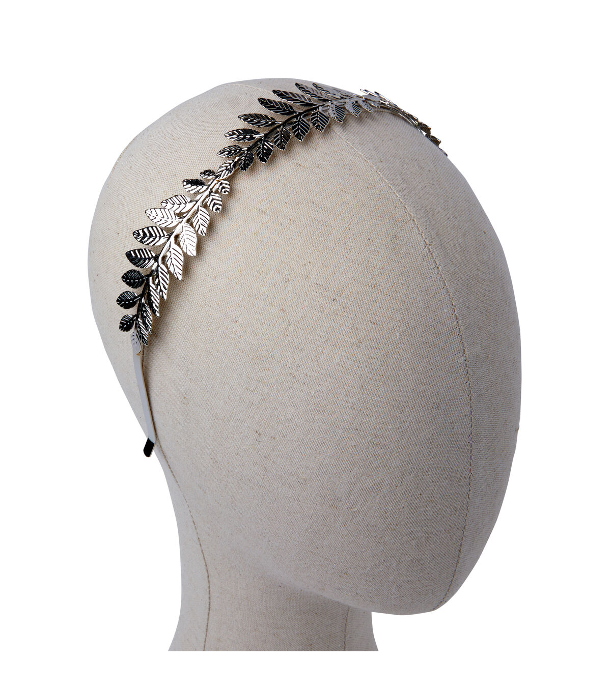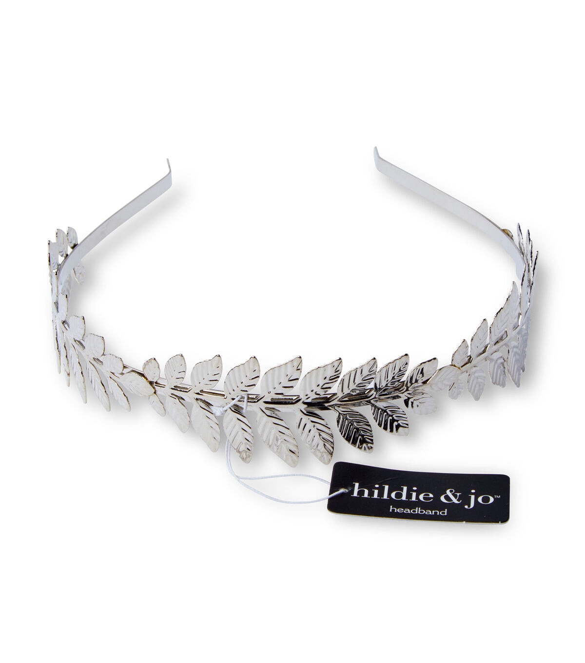 Be the eye-candy at your next party by wearing this hildie & jo Leaves Silver Headband. Featuring a pair of self-patterned leaves spreading across the entire headband, it's perfect to style your chic hairdos. Taking its charm further are the intricate detailing on its stems. Wear it with your little black dress for sheer visual delight.