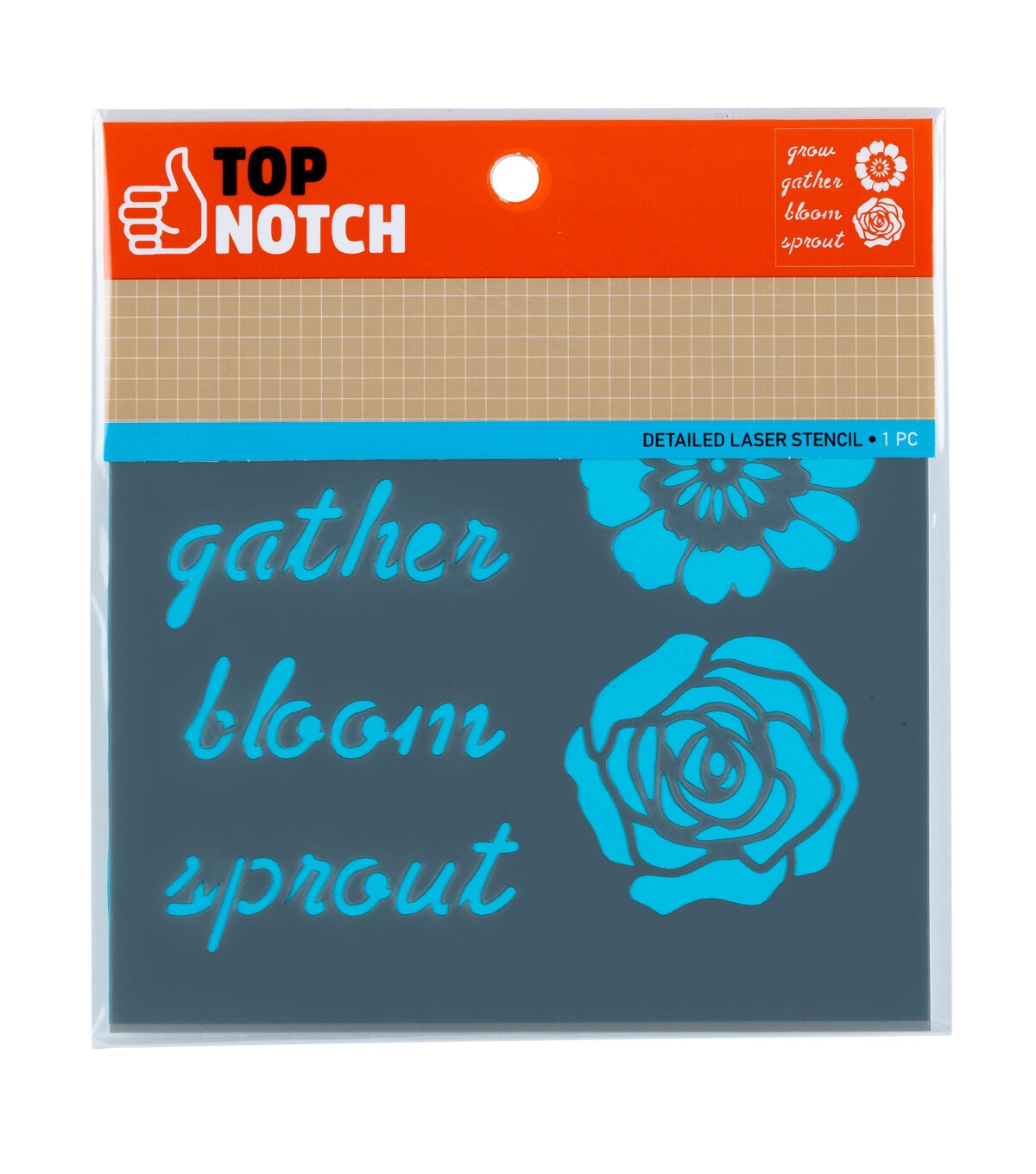 The Top Notch Garden Stencil Sheet is a simple floral stencil that every crafter needs. This 6" x 6" stencil features a variety of flower designs as well as garden phrases to complete your creation. Durable and reusable, this mylar stencil sheet is easy to clean up with mild soap and warm water. Add the Top Notch Garden Stencil Sheet to your collection of stencil designs for added charm and character.The Top Notch Garden Stencil Sheet is a simple floral stencil that every crafter needs. This 6" x 6" stencil features a variety of flower designs as well as garden phrases to complete your creation. Durable and reusable, this mylar stencil sheet is easy to clean up with mild soap and warm water. Add the Top Notch Garden Stencil Sheet to your collection of stencil designs for added charm and character.