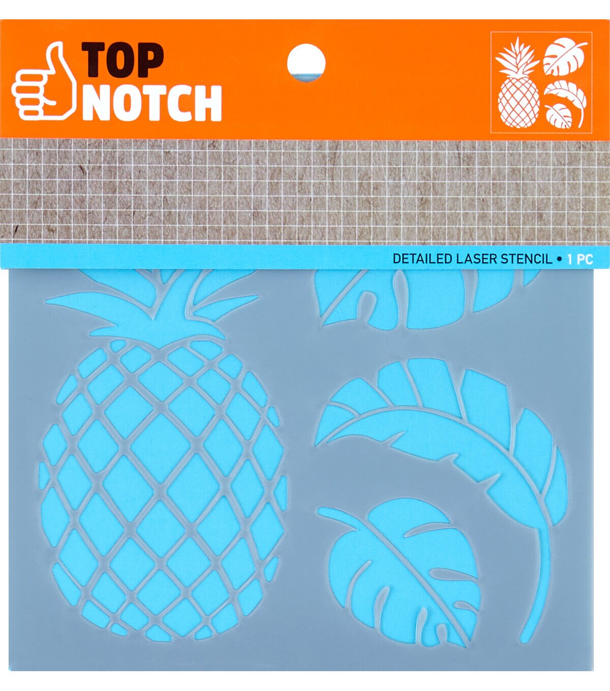 Give your DIY projects an exotic vibe with the Top Notch Tropical Leaves Stencil Sheet. Featuring palm leaves and a pineapple, this stencil sheet will add some extra charm to any project. Durable and reusable, this mylar stencil sheet is easy to clean up with mild soap and warm water. Dream of sun and sandy beaches with the Top Notch Tropical Leaves Stencil Sheet.