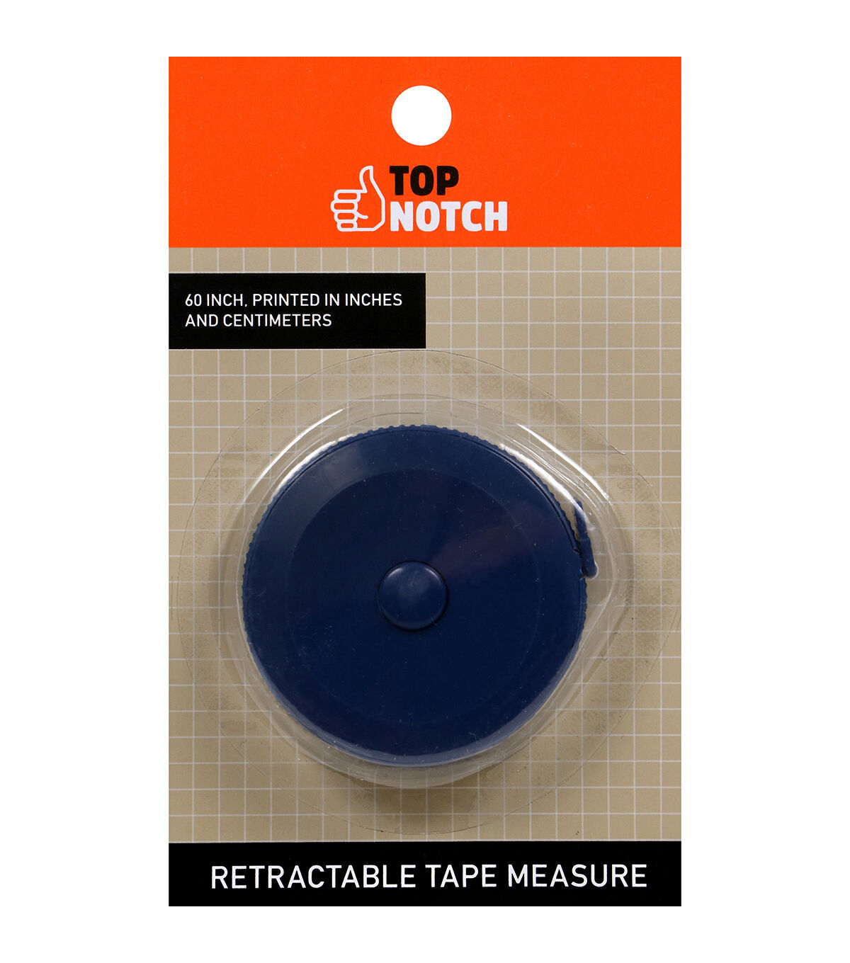 The Top Notch Retractable Tape Measure is a stylish tape measure crafted from sturdy vinyl. This vinyl tape measure extends to 60 inches (150 cm) and can be used as both a fabric tape measure and a body tape measure. The vinyl measuring tape is double sided to measure centimeters on one side and inches on the other, and features easy-to-read white numbers printed on a black background. To use, simply pull the tab and the tape measure rolls out. When you’re finished, just press the button on the case and hold down until the measuring tape has fully retracted. Use for dressmaking, hemming, or any sewing project where precise measurements are needed. Stylish, functional, and easy to use, the Top Notch Retractable Tape Measure is the perfect measuring tool for all types of sewing projects.