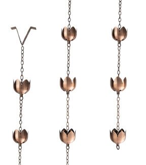 The Spring Bronze Floral Rain Catcher Windchime by Place & Time will make a beautiful addition to your outdoor decor. This rain catcher wind chime in a bronze tone is designed with floral accents attached to a chain. You can use it in place of a downspout to collect rainwater and funnel it to the ground.