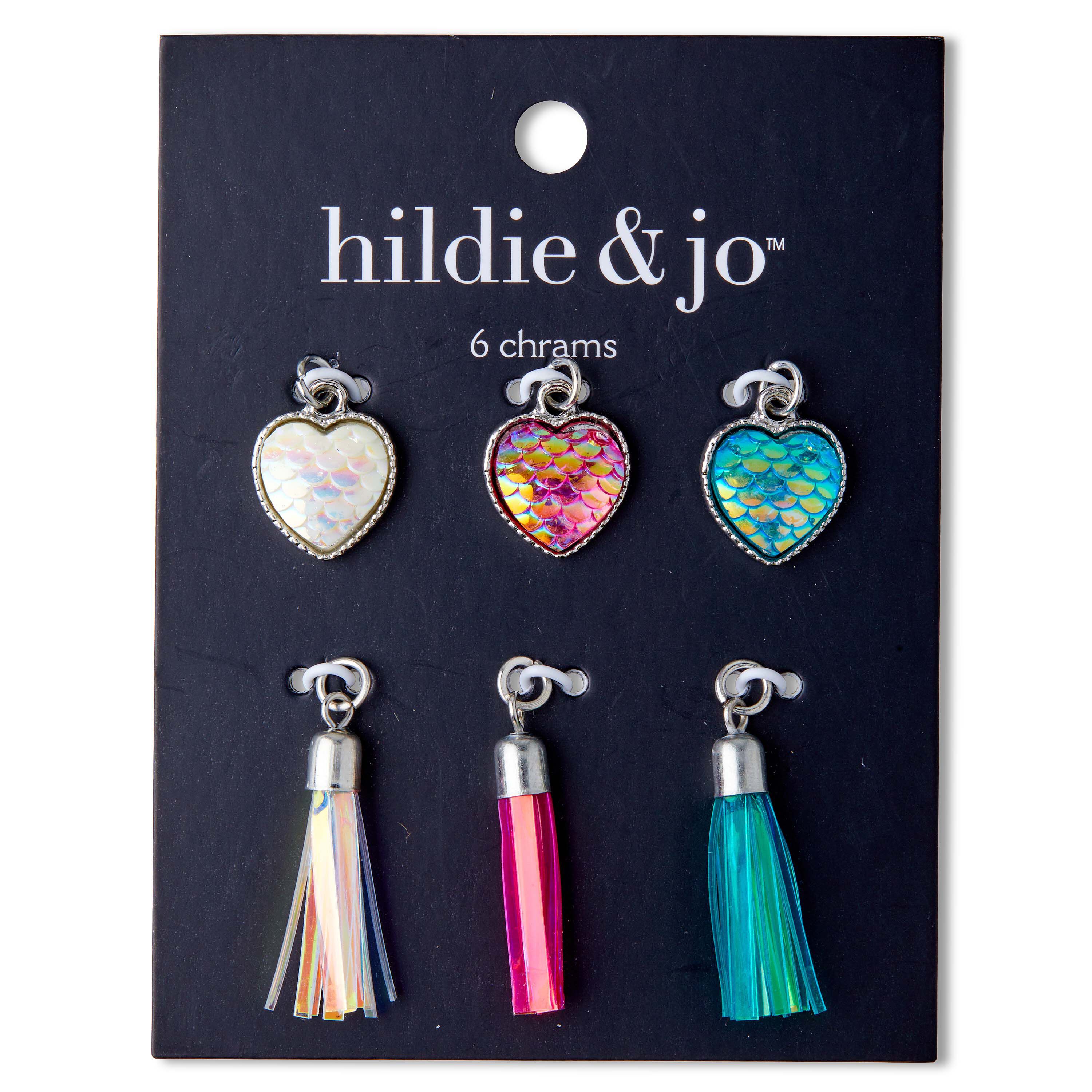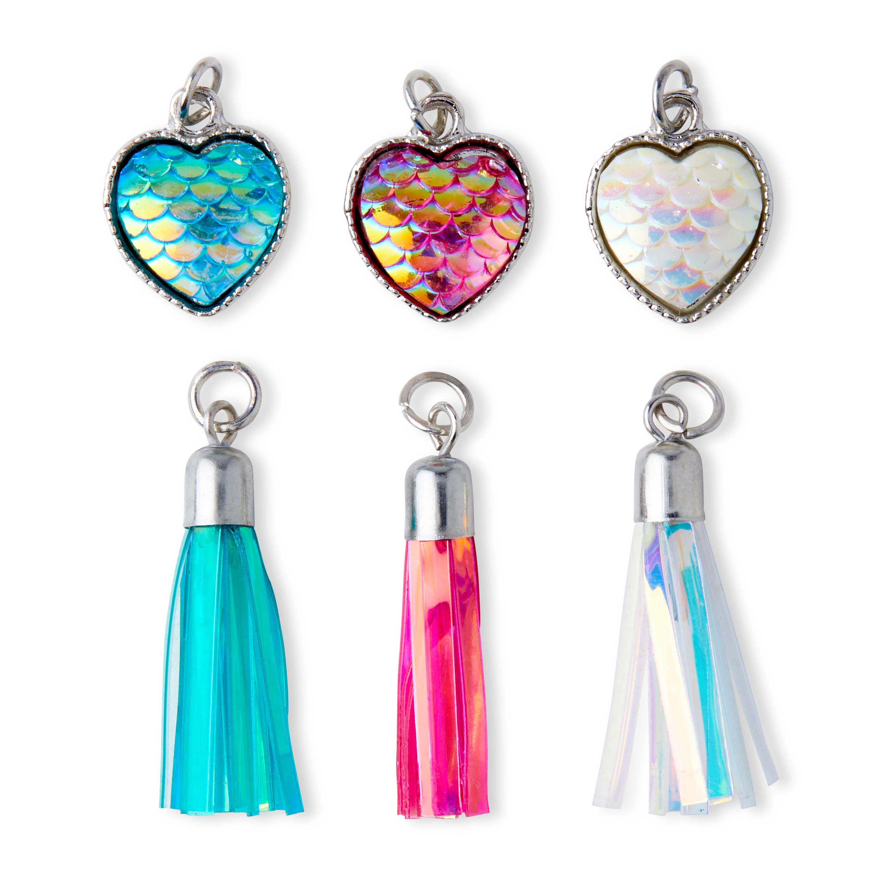 Add a charming touch to your DIY jewelry projects with the hildie & jo Heart & Tassel Charms-Mermaid. With elegant charms shaped as hearts and tassels, your jewelry pieces are sure to make a lasting impression. The six charms in this pack come with jump rings for easy attachment to neckpieces, bracelets and more.