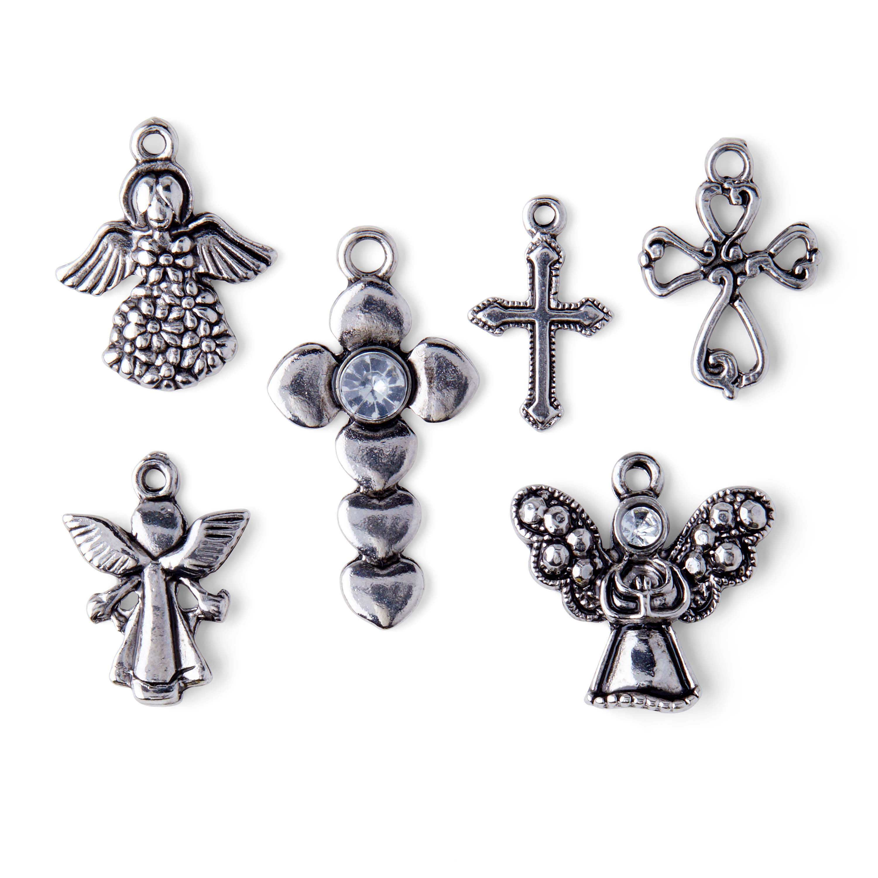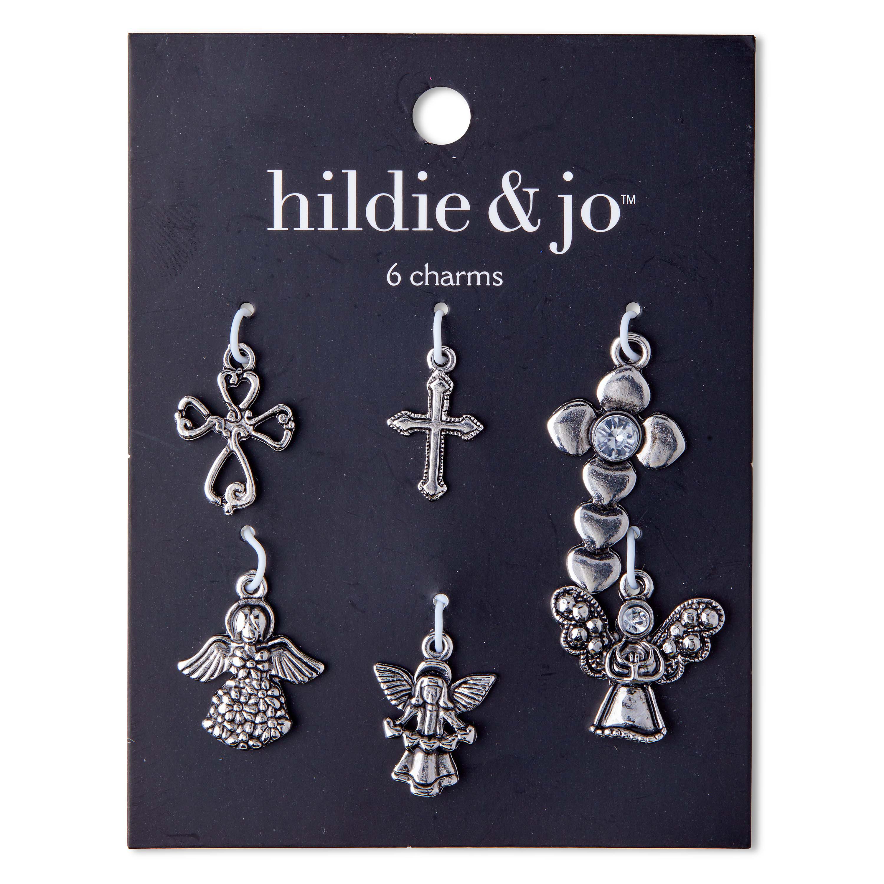 Express your faith in style with these hildie & jo Cross & Angel Assorted Metal Charms. Exhibiting an oxidized look, these metal charms will add a distinct touch to your jewelry projects. The set includes three crosses and three angels in assorted designs. Two of them are embellished with a rhinestone each for enhanced visual appeal.