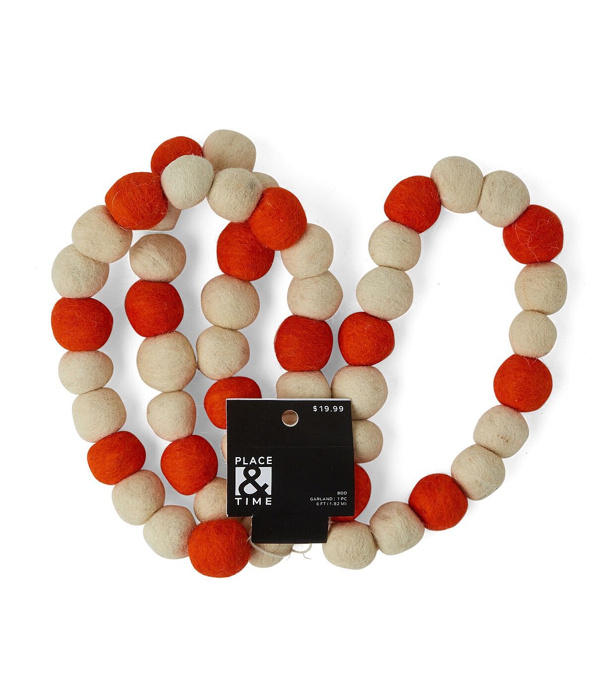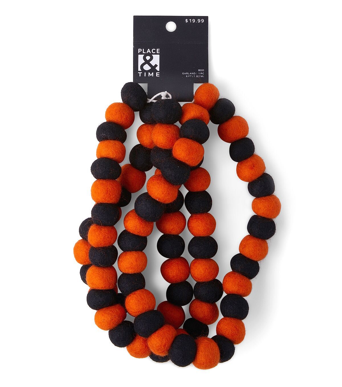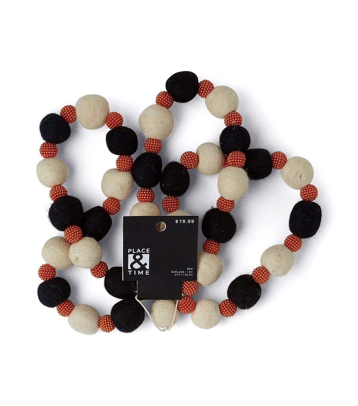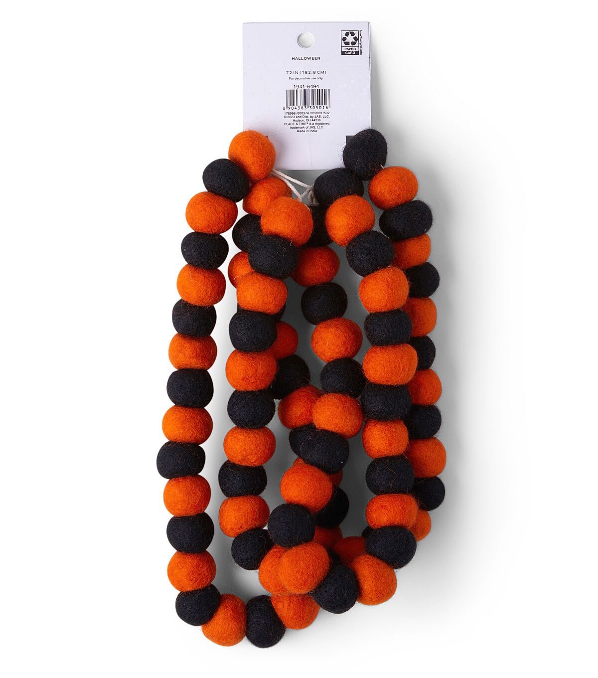 Enhance your Halloween home decor with these Halloween Felt Ball Garlands by Place & Time. Designed with felt beads, this garland emanates spooky vibes. Team the wreath and garland with string lights to create an illuminated display.