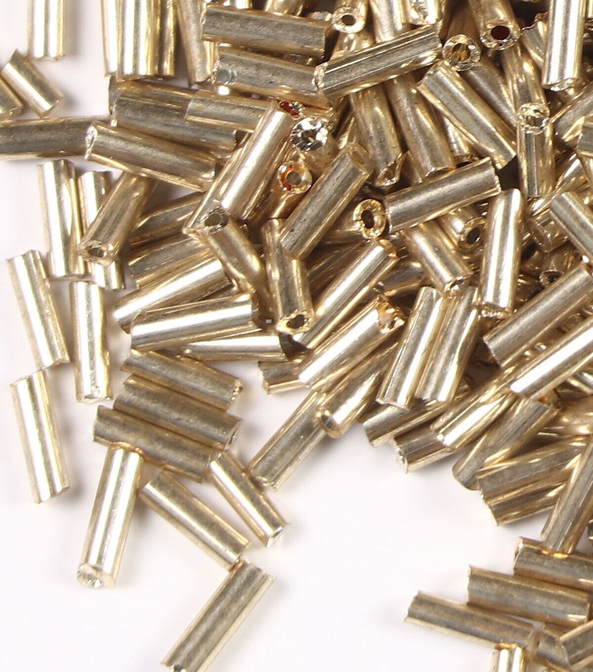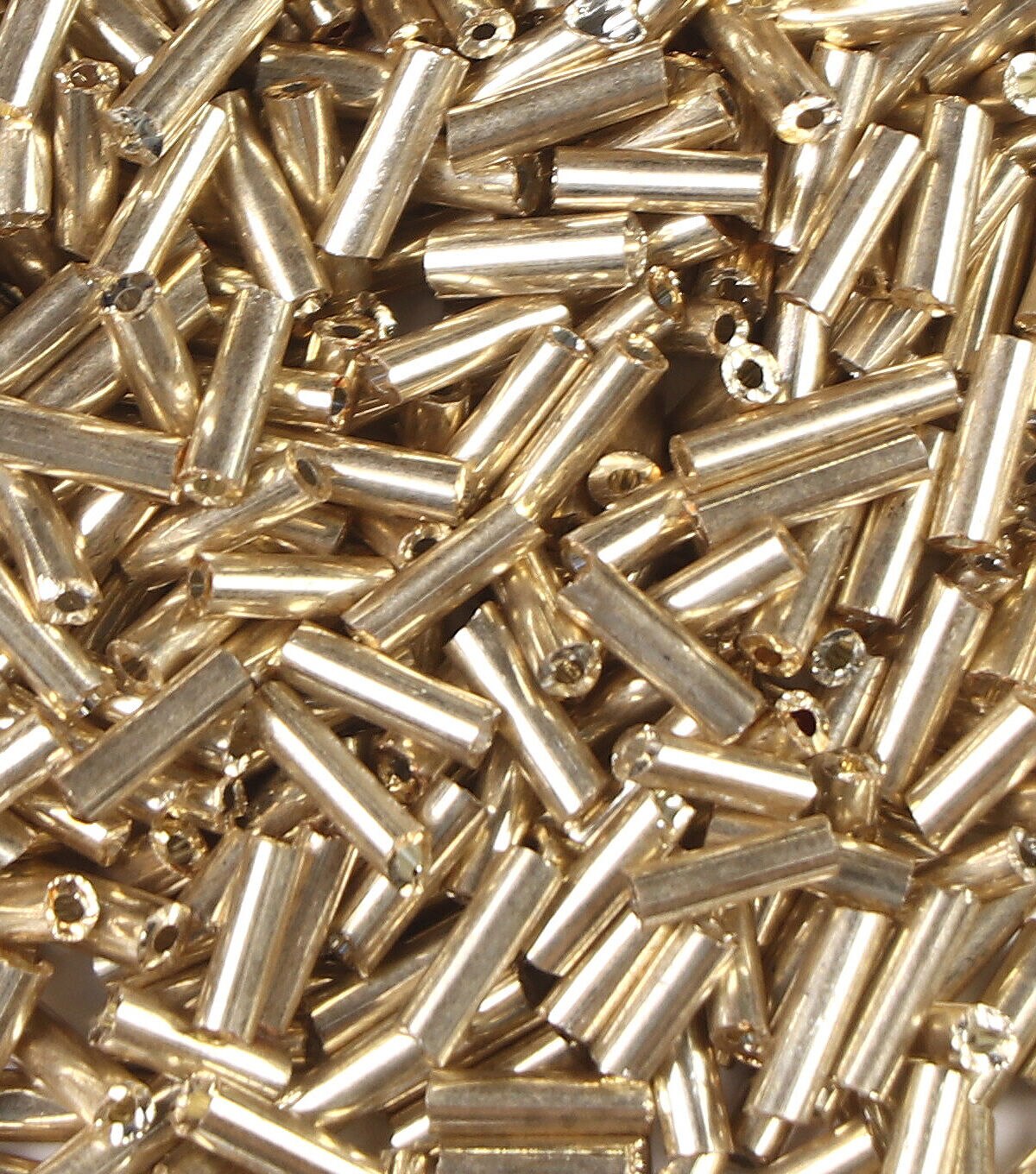 Use the hildie & jo Glass Bugle Beads - Gold in a variety of jewelry creations and beadwork designs. These simple gold-toned glass bugle beads are perfect as spacers in bracelets and earrings. You can also combine them with other tiny beads in seed bead necklaces and more. They are 0.25-inch long and are a good basic bead to keep in supply at all times.