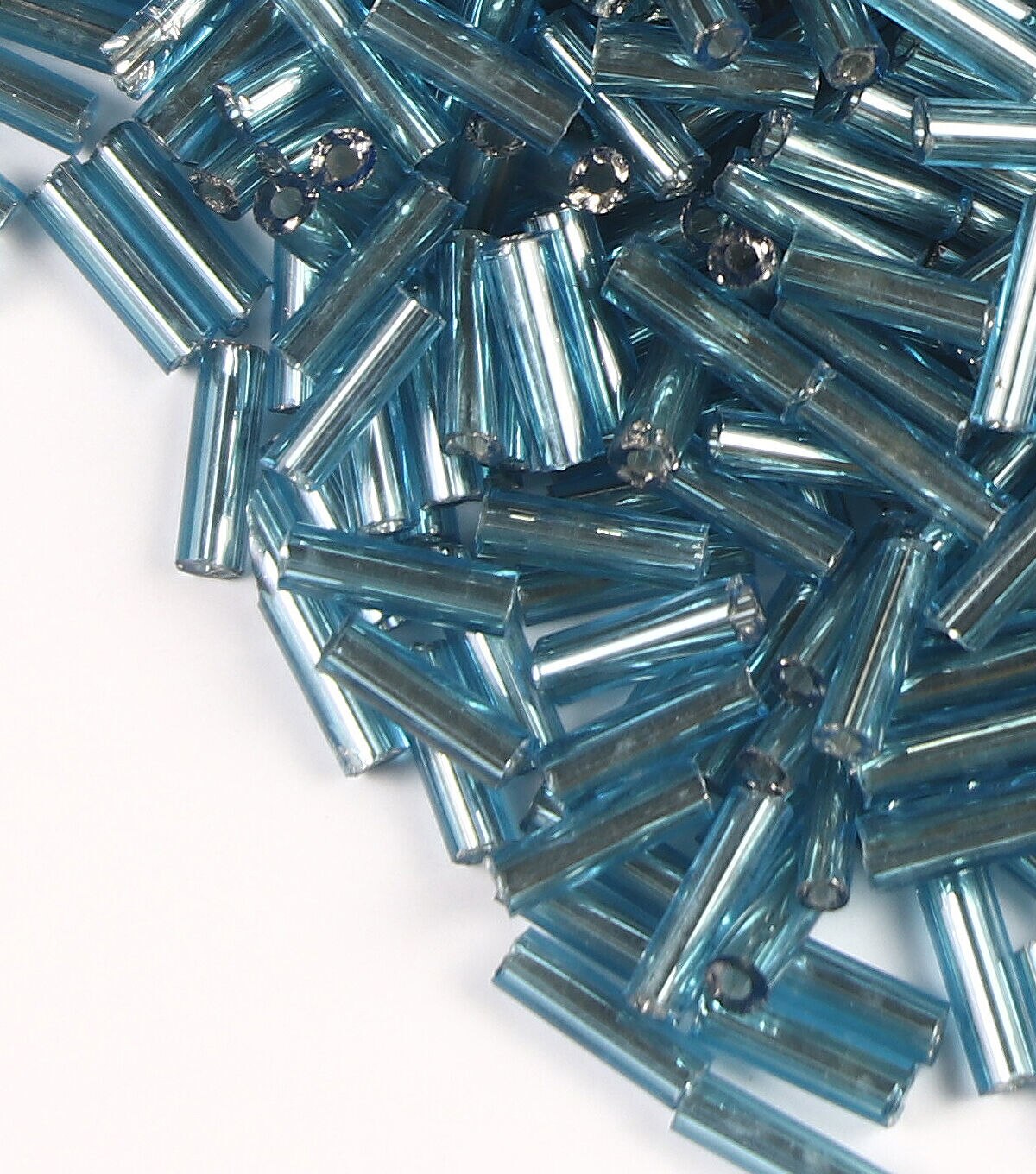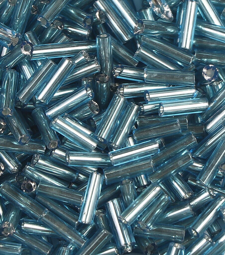 Accentuate handmade jewelry pieces with the hildie & jo Glass Bugle Beads - Turquoise with Silver Lining. This pack contains 0.25-inch bugle beads sporting a turquoise shade and silver-toned lines. Team these beautiful beads with other coordinating beads to make earrings, rings, necklaces, bracelets and more.