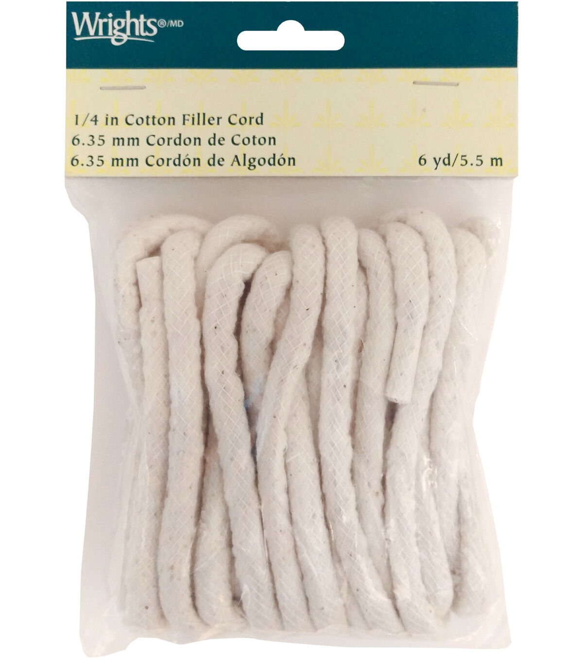 Create a custom bias piping cord with the Wrights Cotton Filler Cord - Natural. This pack contains 6 yards of 0.25-inch piping cord that is made of cotton and polyester. It will make a useful addition to your sewing essentials. You can use it to trim cushions, pillows and more.
