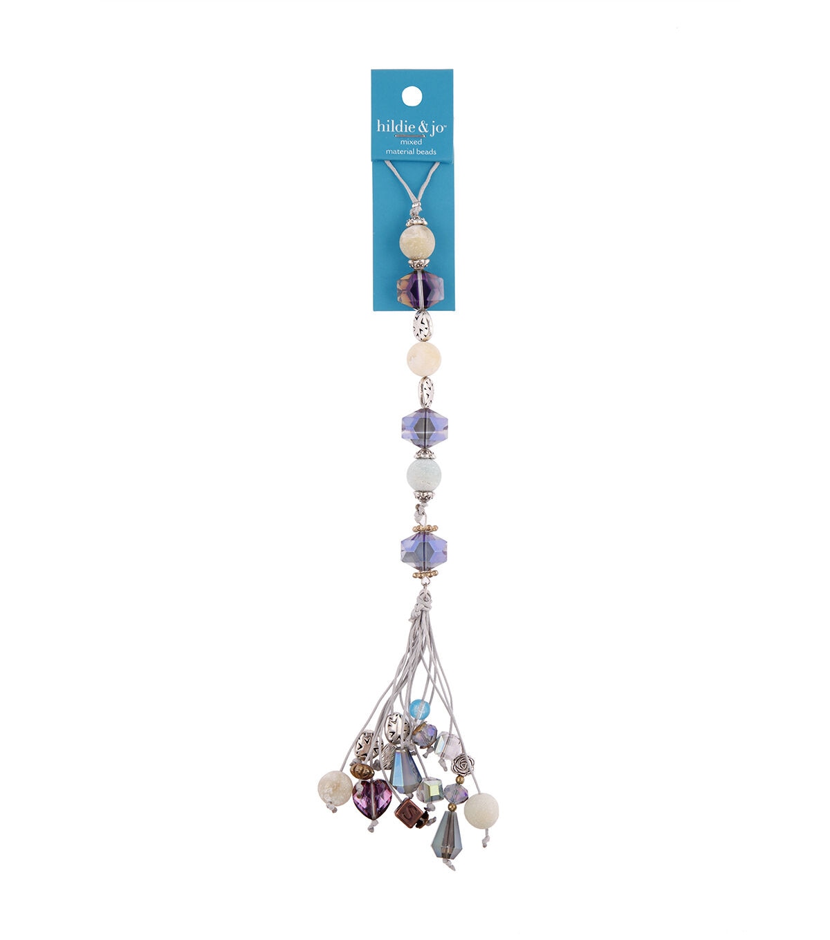 Add the hildie & jo Dangle Mixed Strung Beads - Blue to your next jewelry project. This pack includes glass, marble, zinc alloy and plastic beads in different shapes and colors. They are sure to perk up the look of your handmade bracelets, anklets, necklaces and earrings.