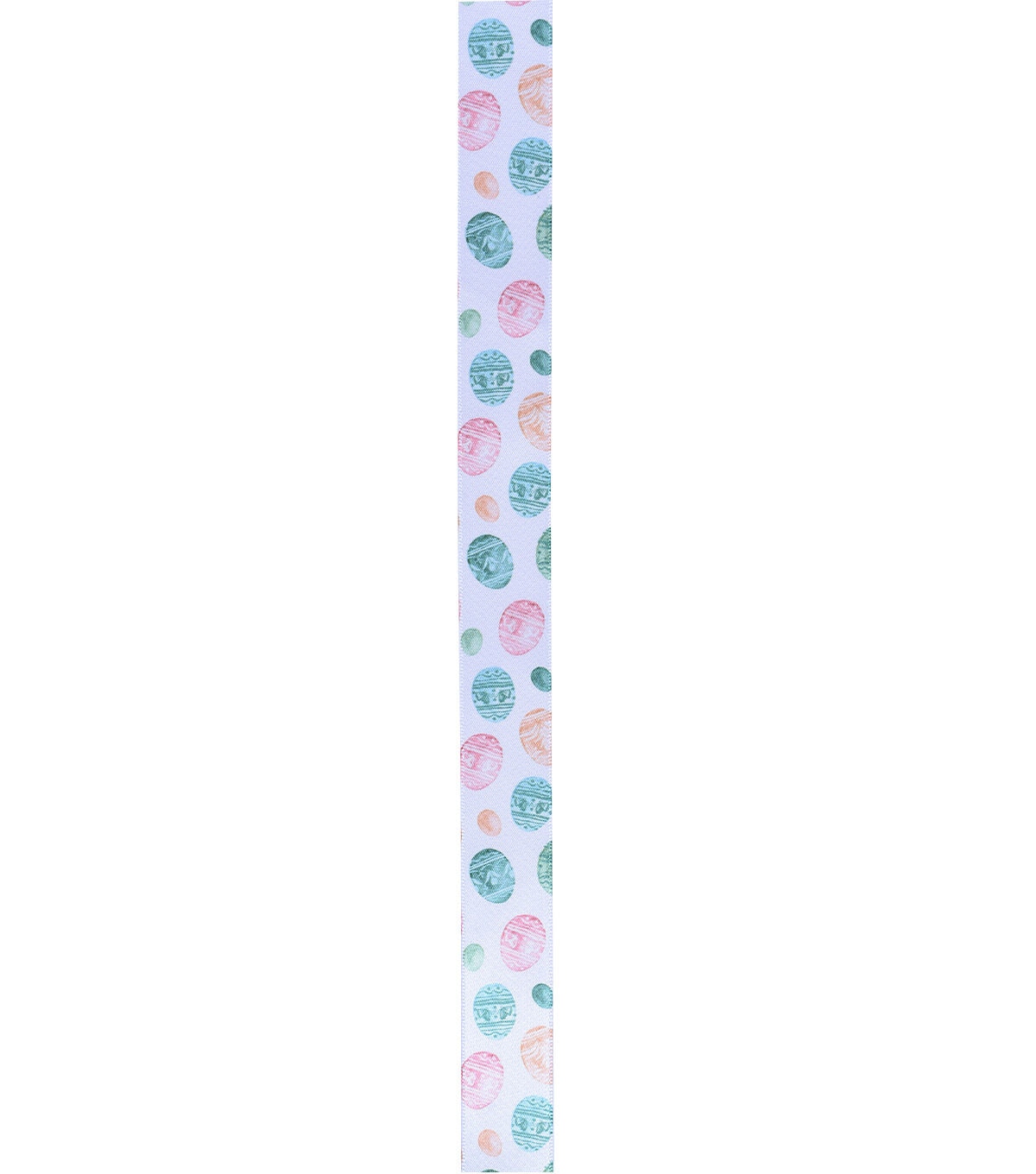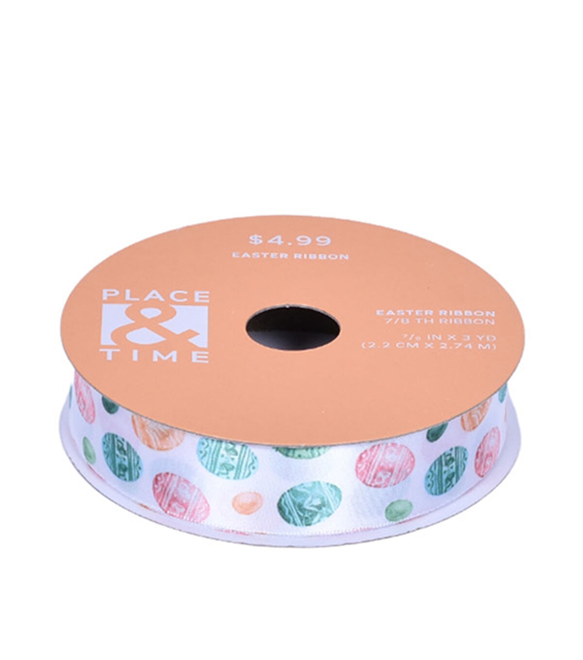The Easter Eggs on White Ribbon by Place & Time will lend an elegant finishing touch to Easter DIY projects. This white ribbon sports a tossed print of Easter eggs in shades of green, orange and pink. It will be perfect to adorn gift baskets, photo frames and more. You can also make bows with it and use them to embellish centerpieces, gift baskets and candle holders.