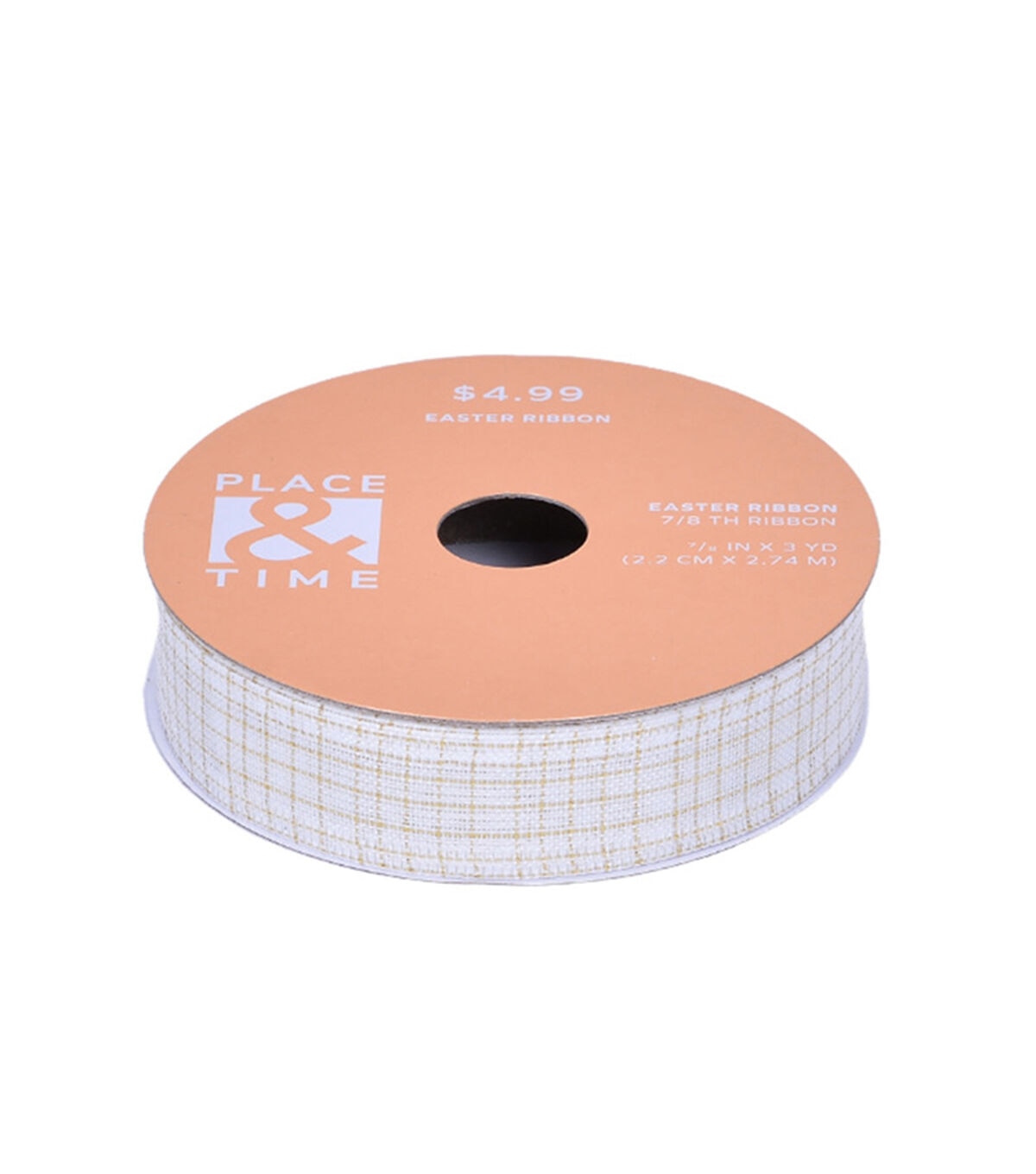 Lend the perfect finishing touch to your Easter home decor with the Easter Gold Metallic Ribbon by Place & Time. It sports a white shade and stripes in a metallic gold tone. Team it with coordinating ribbons and use them to make a colorful ruffle wreath. You can also use it to decorate the Easter basket.