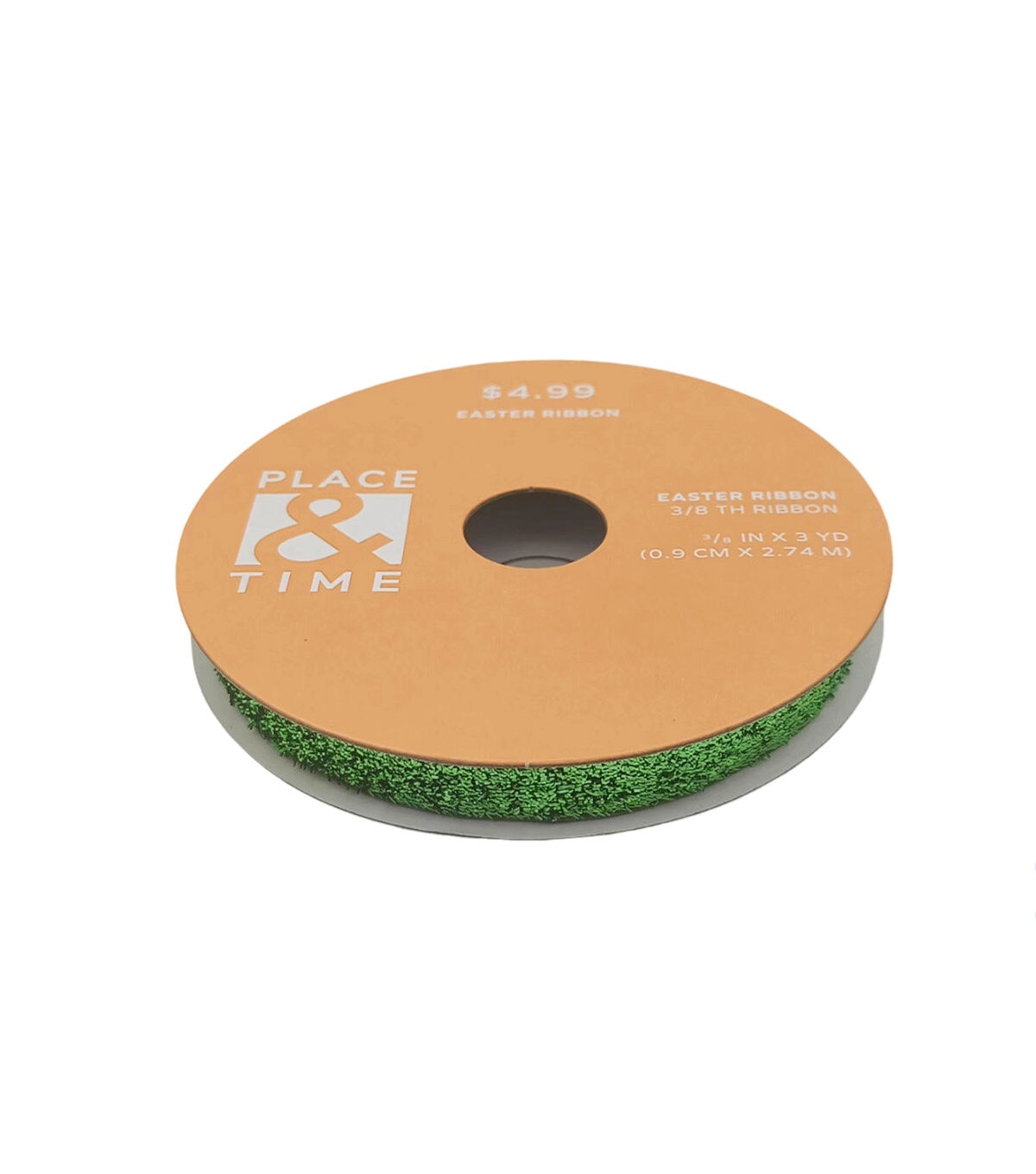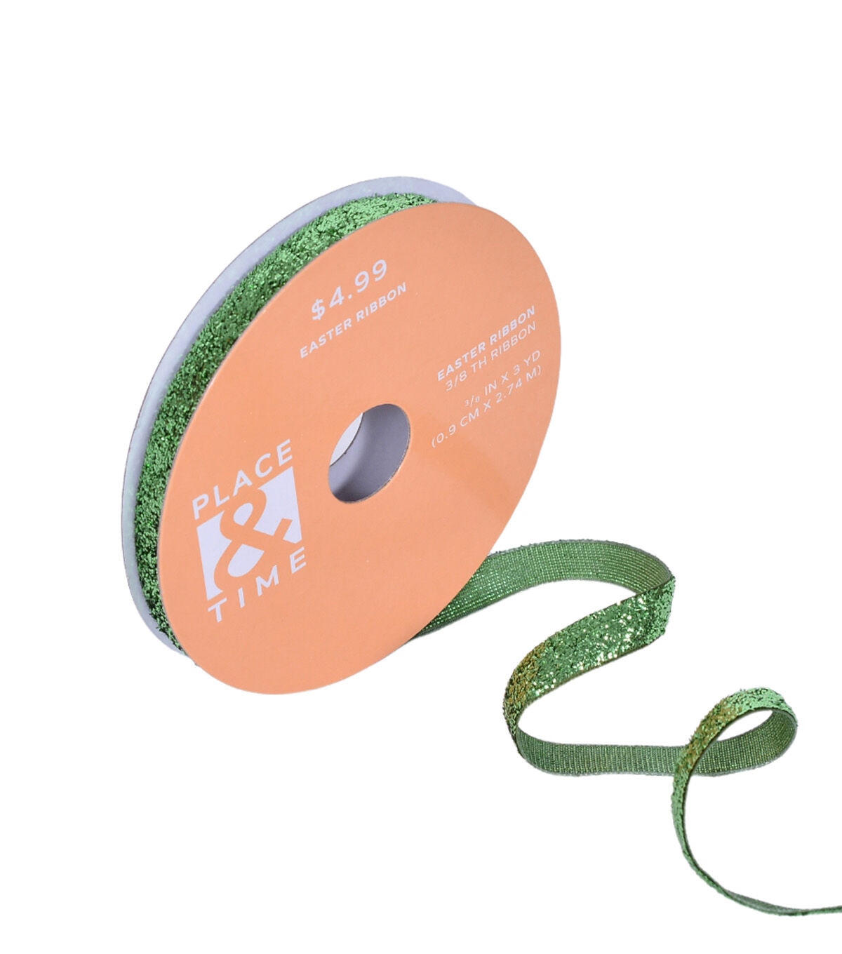 Jazz up your Easter craft and decor projects with the Easter Green Glitter Velvet Ribbon by Place & Time. This ribbon sports a lovely green hue and a glitter finish. Get creative and cut, twist, curl and tie it into beautiful bows and flower embellishments and use them to decorate wreaths, presents, Easter baskets and more.