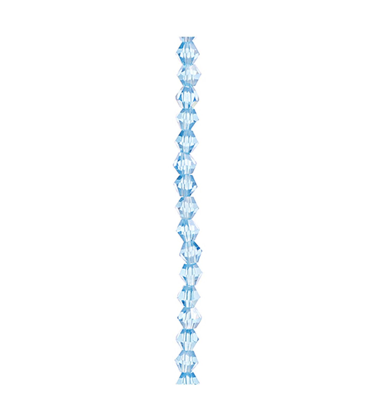 Add a touch of gleam to your jewelry creations with the hildie & jo Aurora Borealis Bicone Glass Bead Strand - Aqua. This pack contains a strand of faceted bicone beads in an aqua hue sporting a sparkling aurora borealis finish They can be used as is or combined with other beads, chains and findings to design statement necklaces, bracelets or earrings.